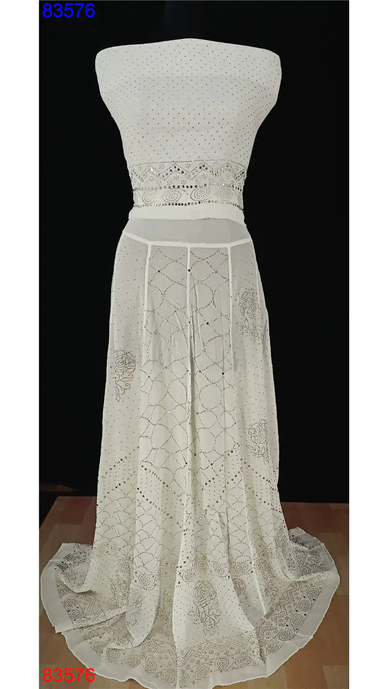 Home » Pure Georgette Lehenga » Bridal Lehenga with mukais kamdani pitta work : 83576