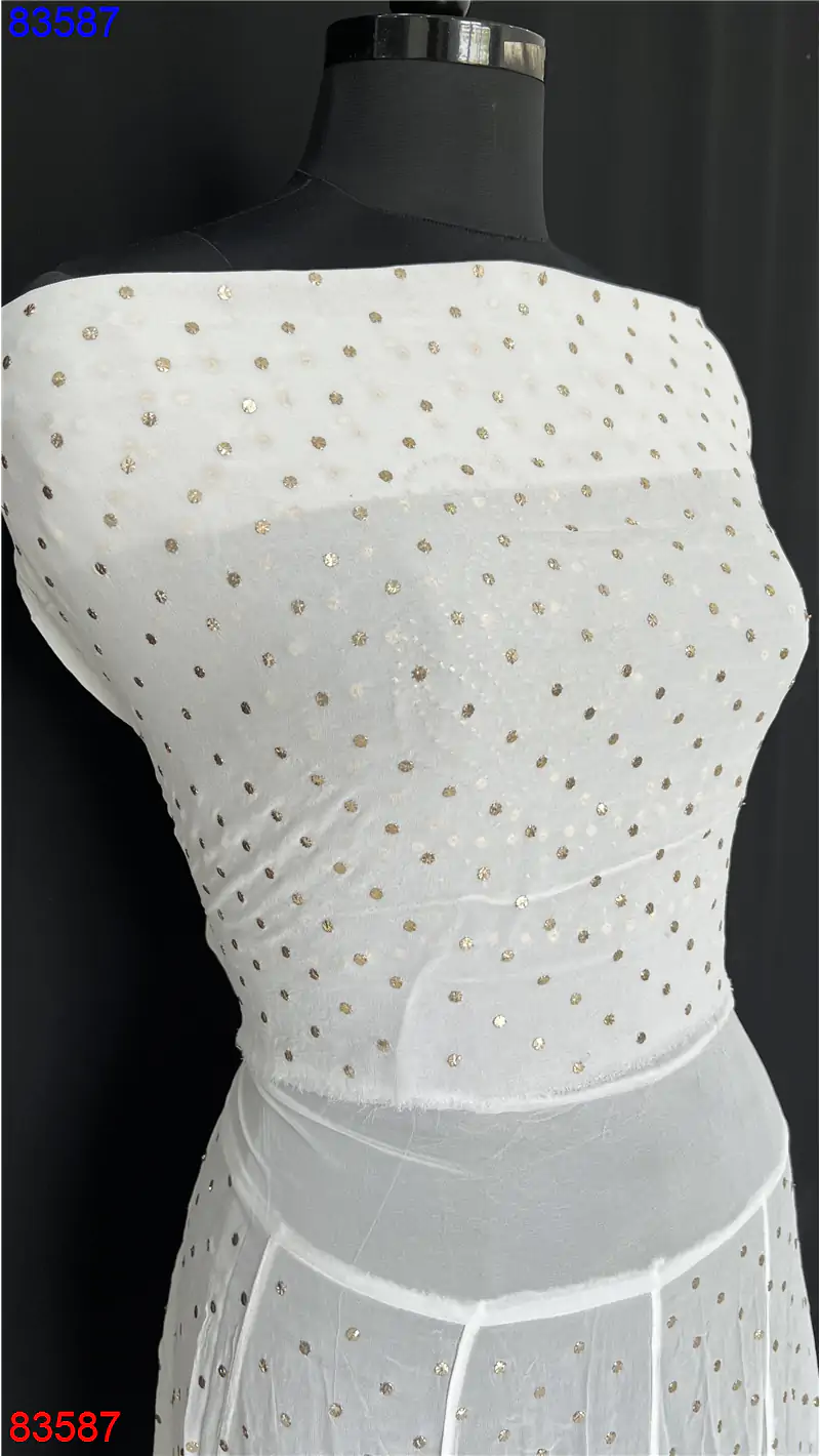 Home » Pure Georgette Lehenga » Bridal Lehenga with mukais kamdani pitta work : 83587