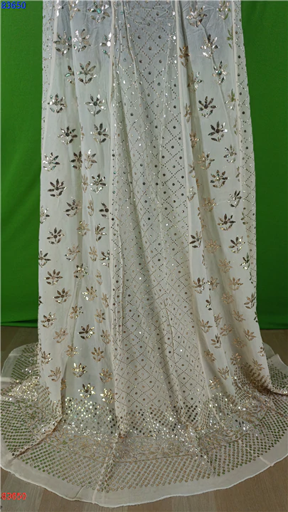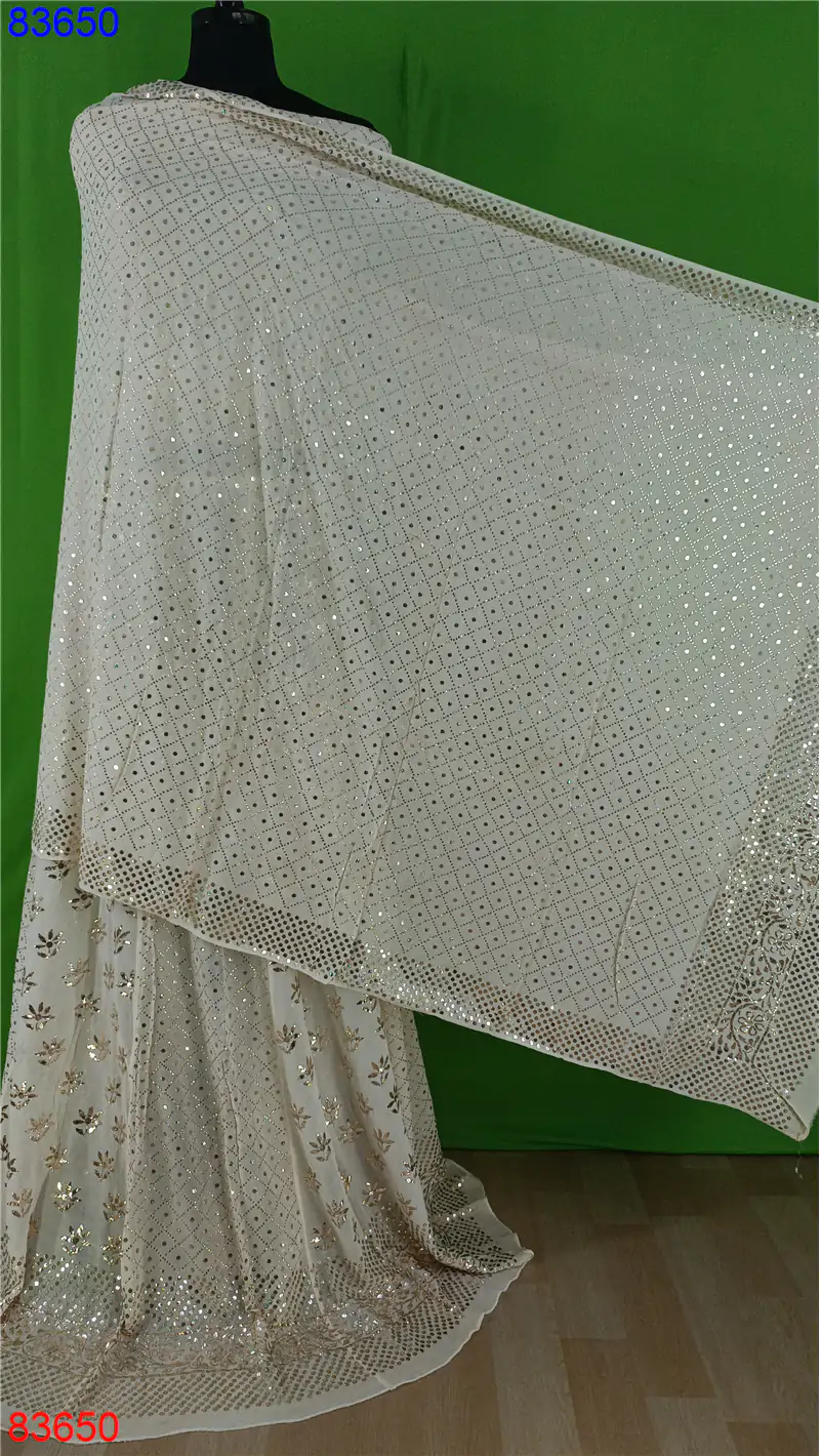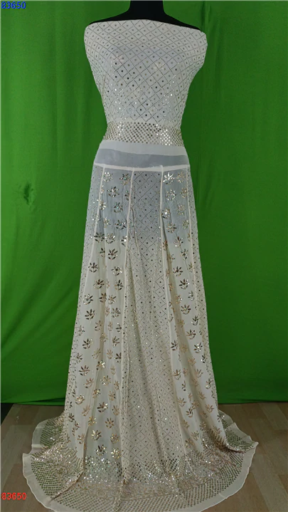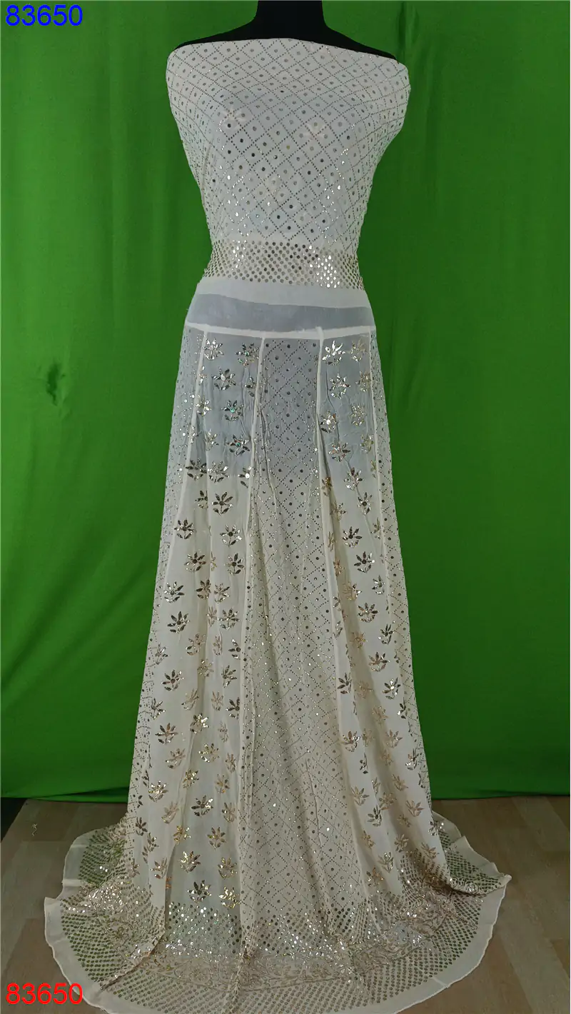 Home » Pure Georgette Lehenga » Bridal Lehenga with mukais kamdani pitta work : 83650