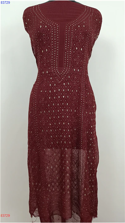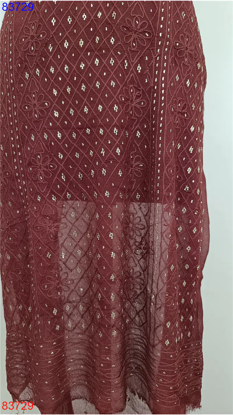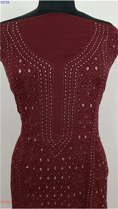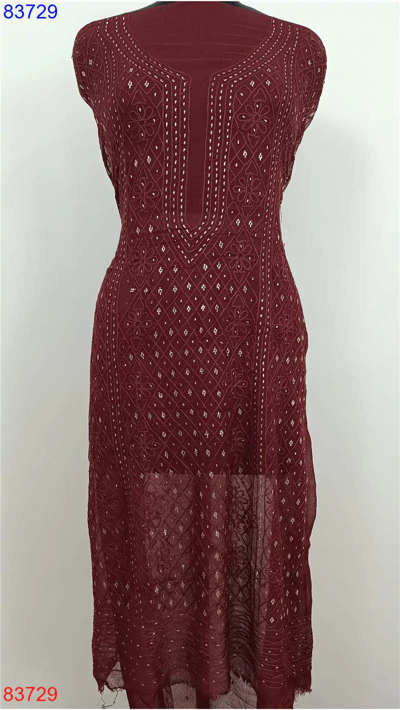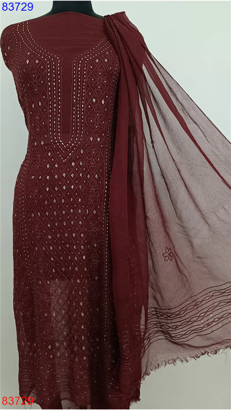 Chiffon Mukaish Suit deep burgundy maroon : 83729