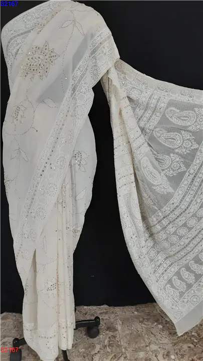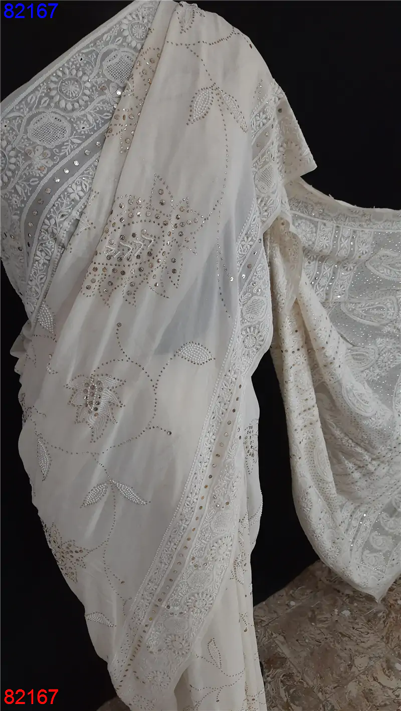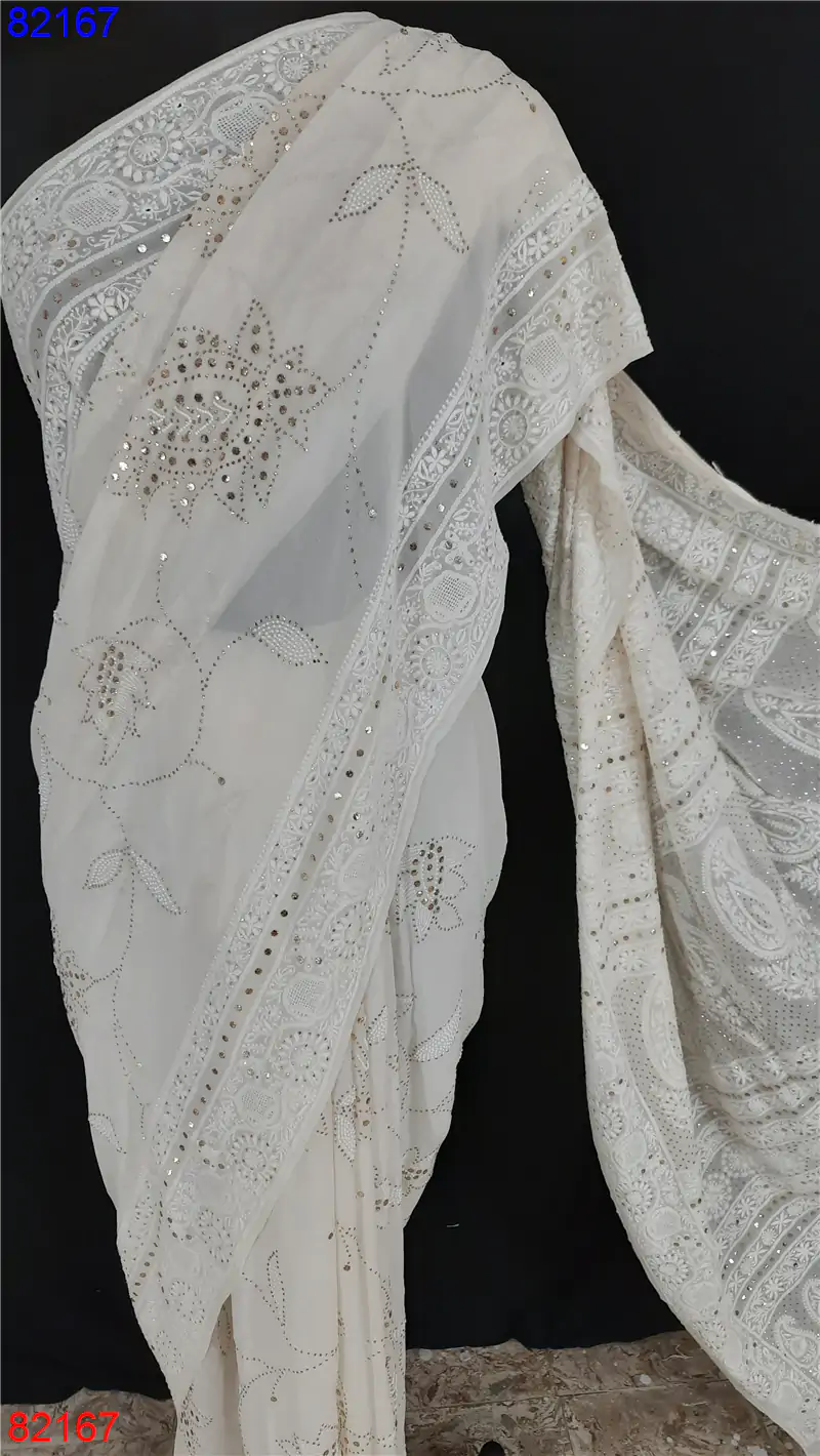 Home » Pure Gorgette Saree » Chikankari Partywear Saree Pure Georgette : 82167