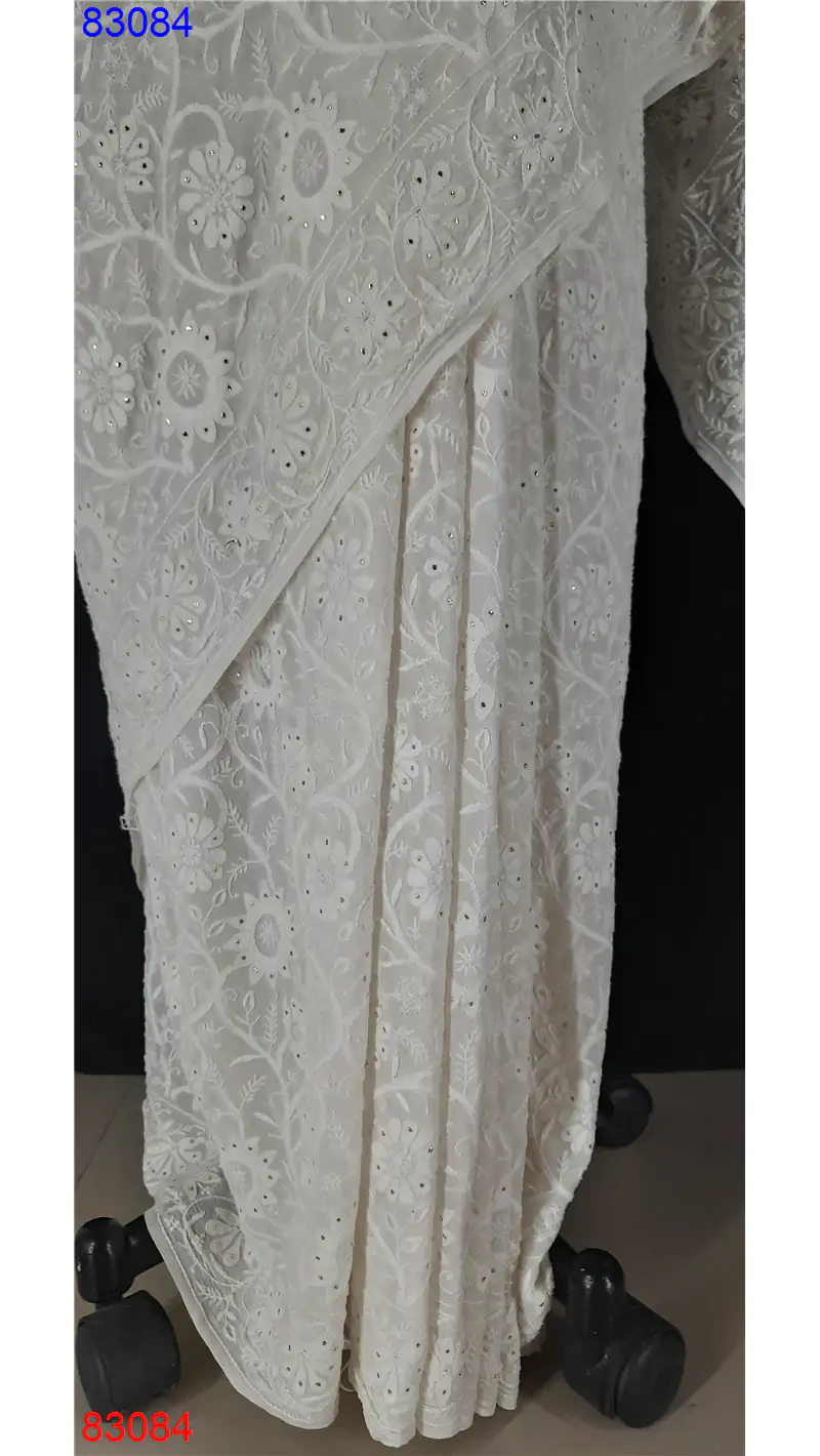 Home » Pure Gorgette Saree » Chikankari Partywear Saree Pure Georgette : 83084