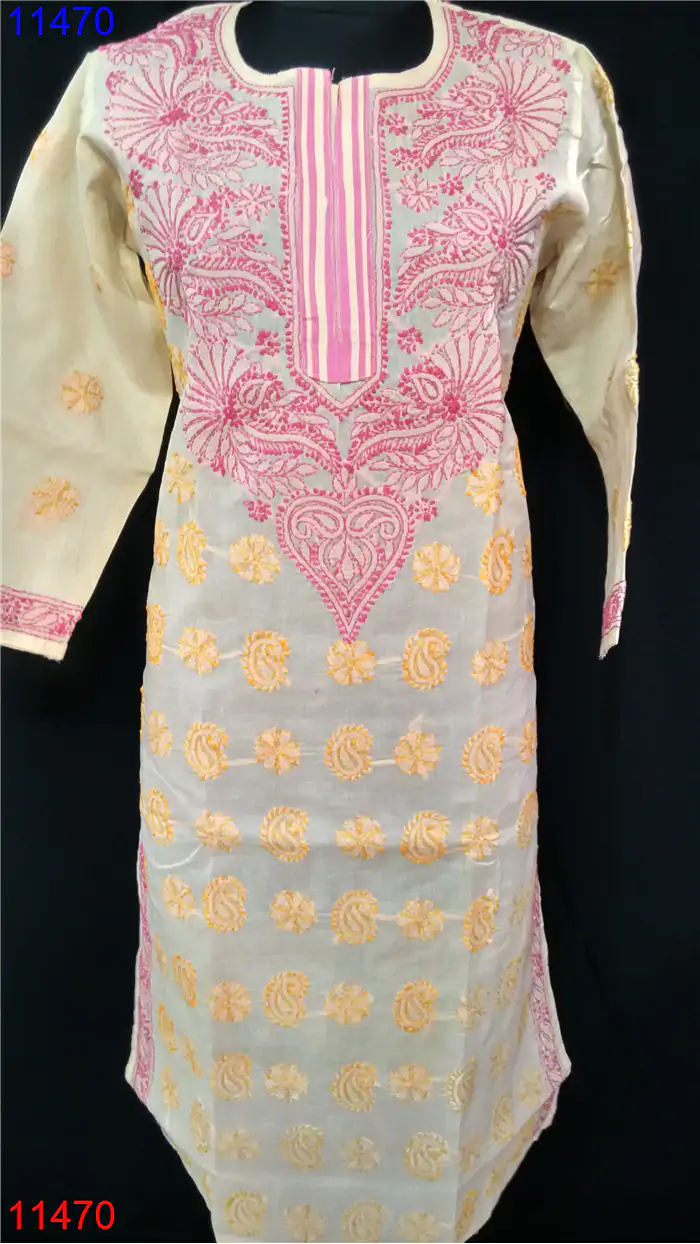 Cotton Kurti Only Chikan work : 11470