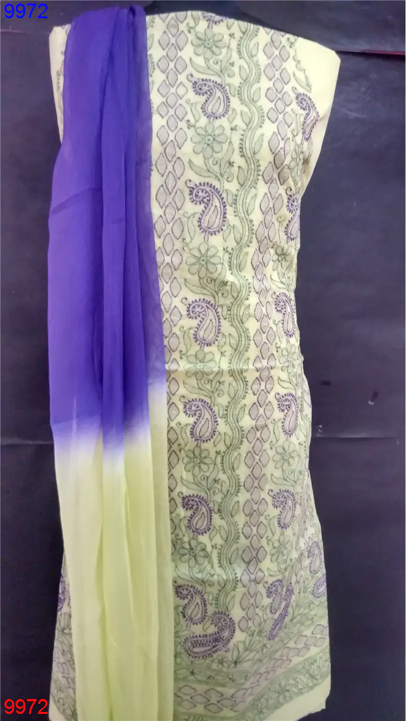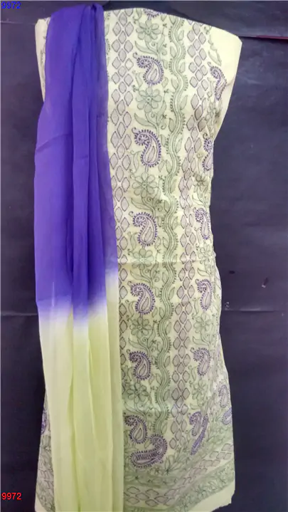 Cotton Straight suit only Chikan work : 9972