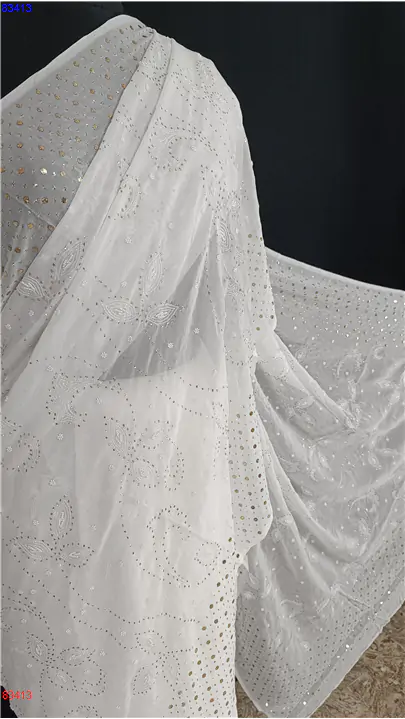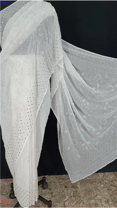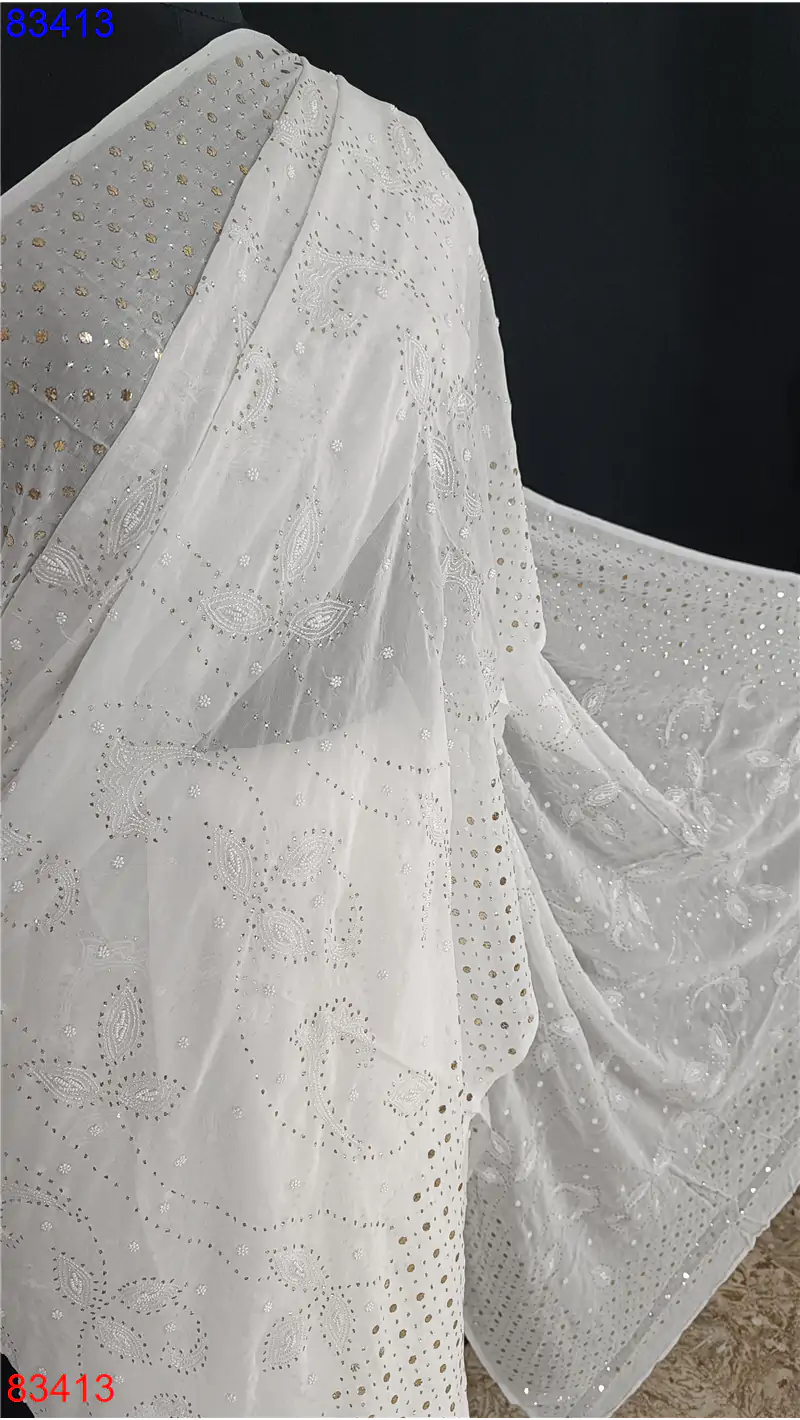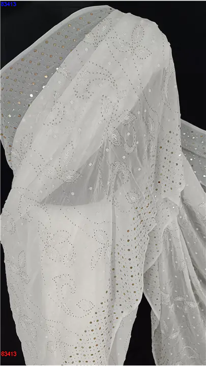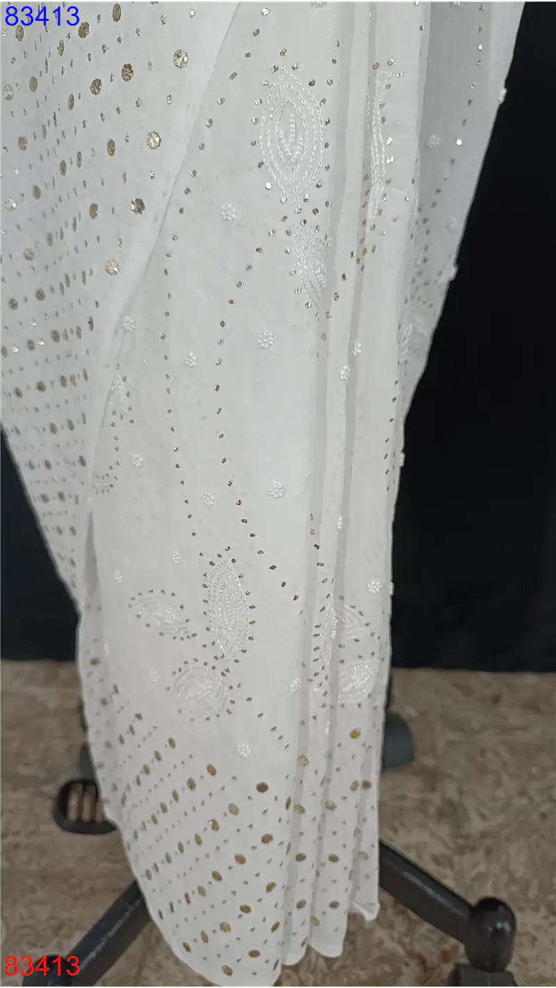 Georgette lucknowi Saree with Mukaish and Badla work : 83413