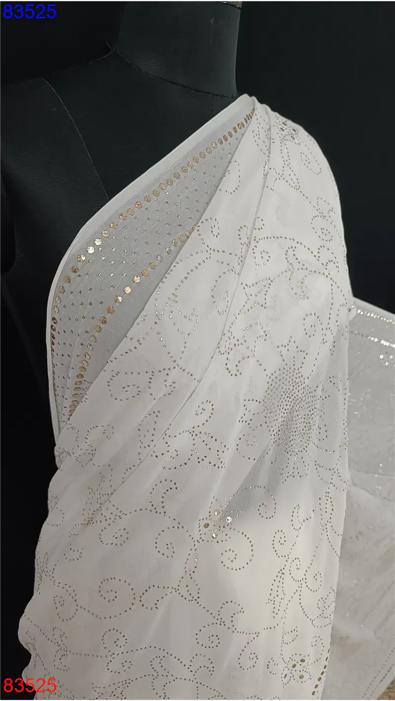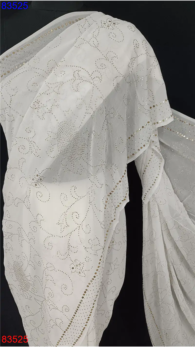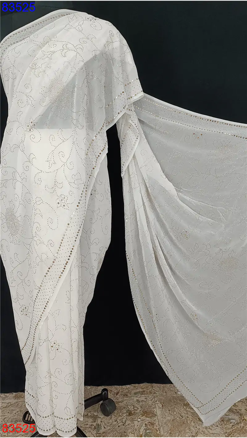 Georgette lucknowi Saree with Mukaish and Badla work : 83525