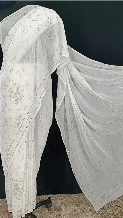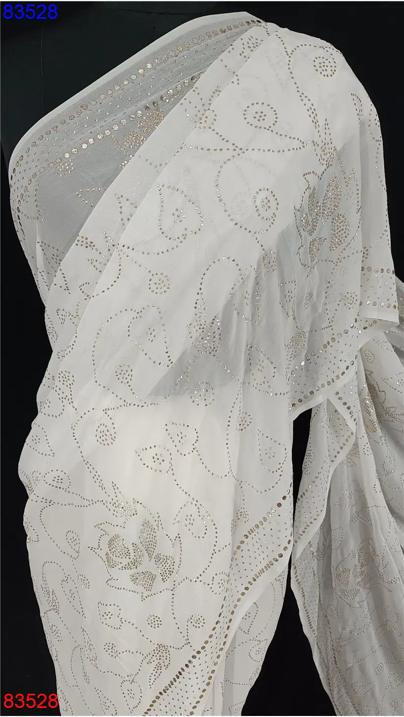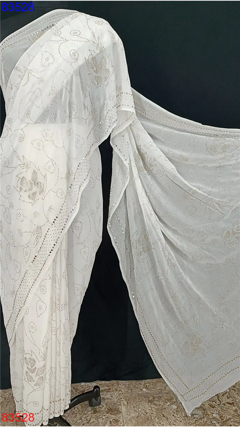 Georgette lucknowi Saree with Mukaish and Badla work : 83528