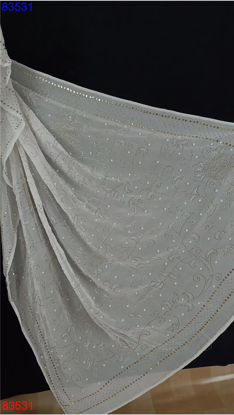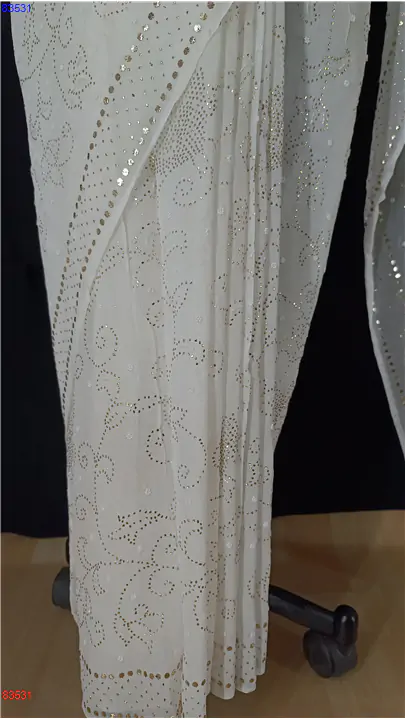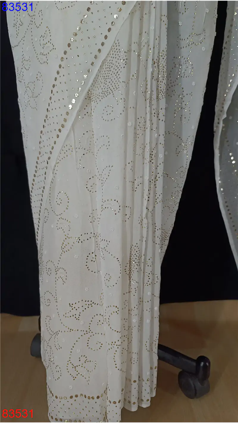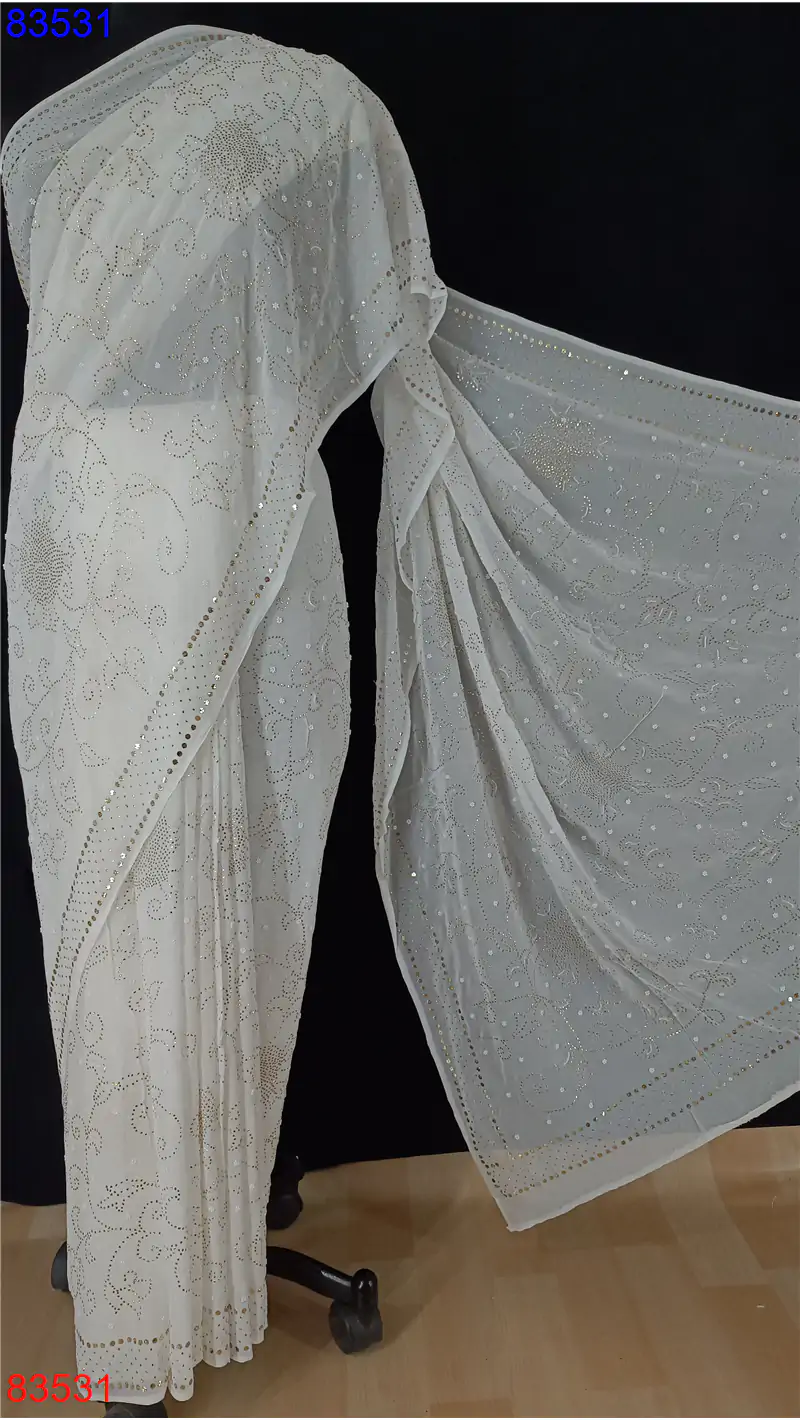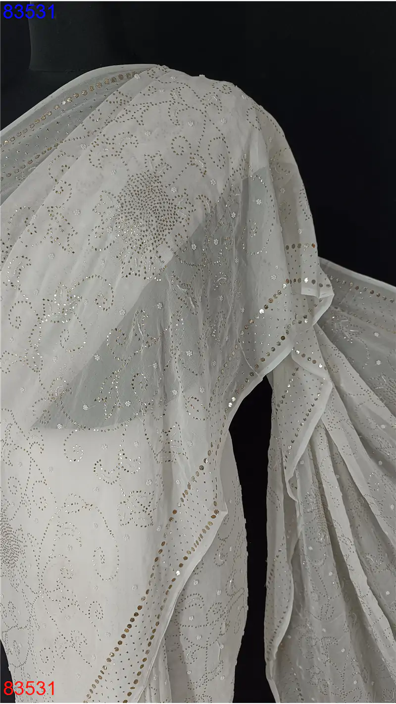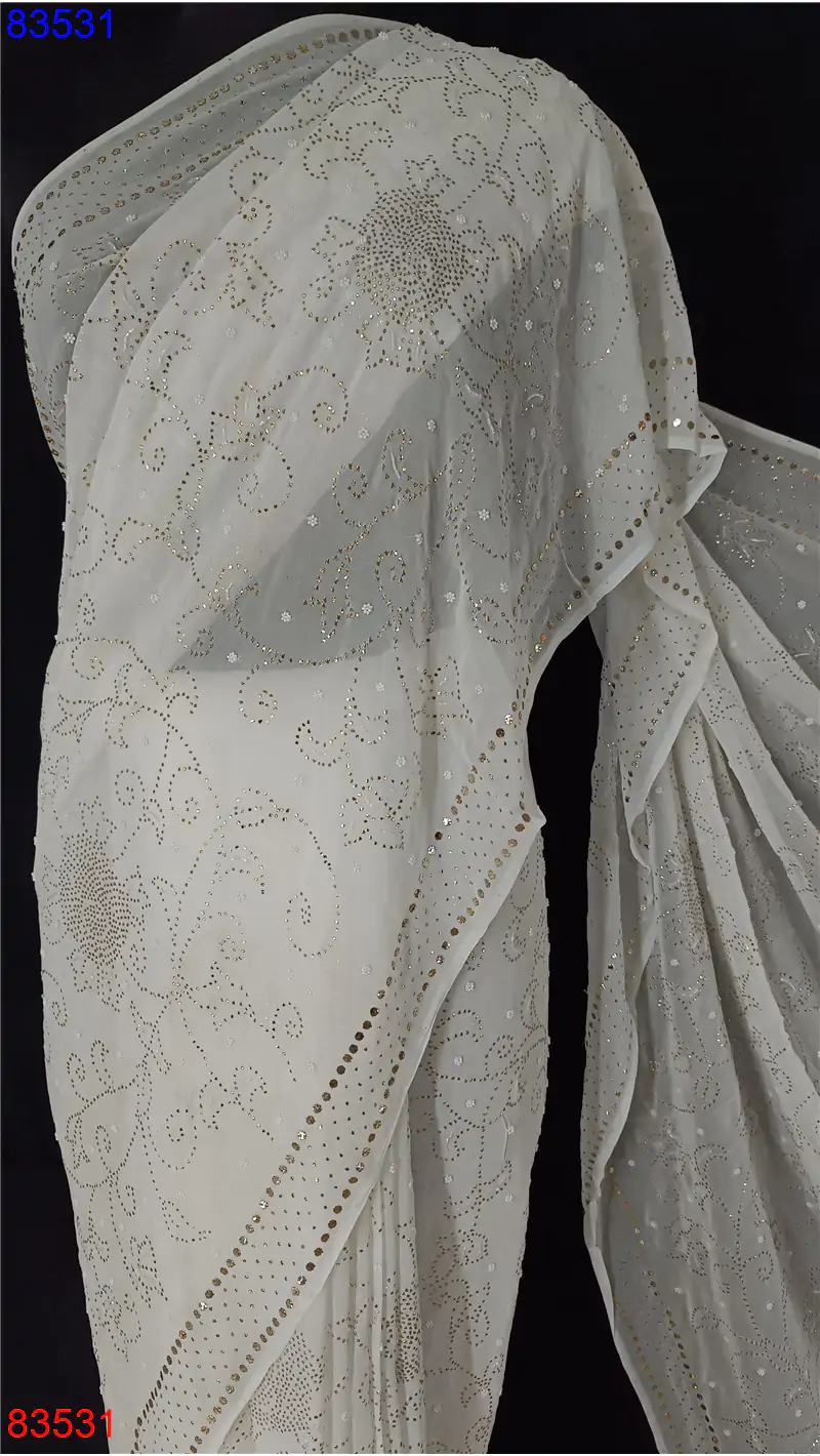 Georgette lucknowi Saree with Mukaish and Badla work : 83531