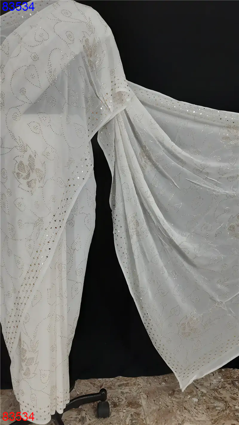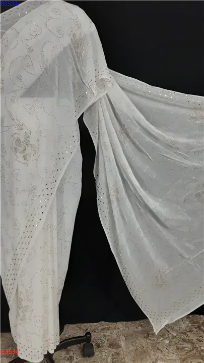 Georgette lucknowi Saree with Mukaish and Badla work : 83534