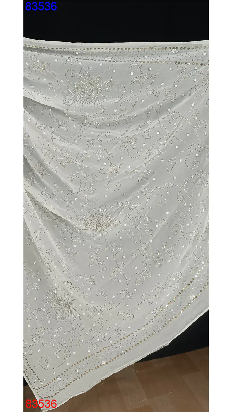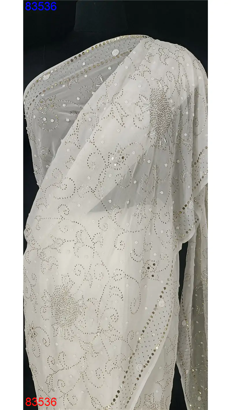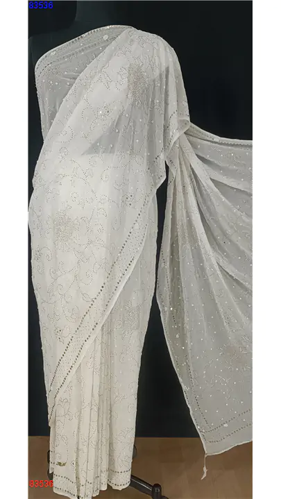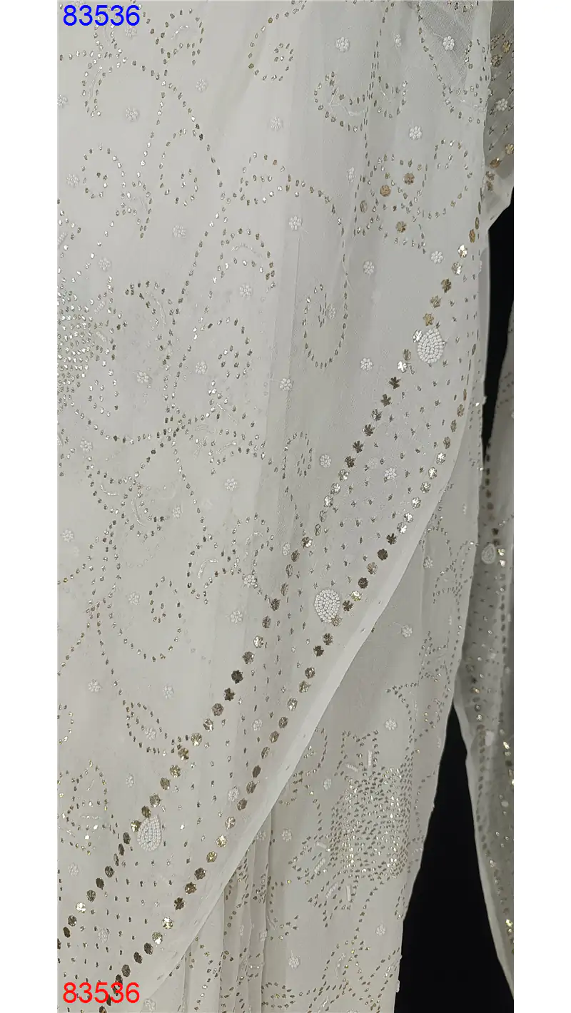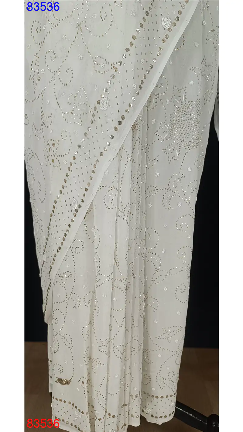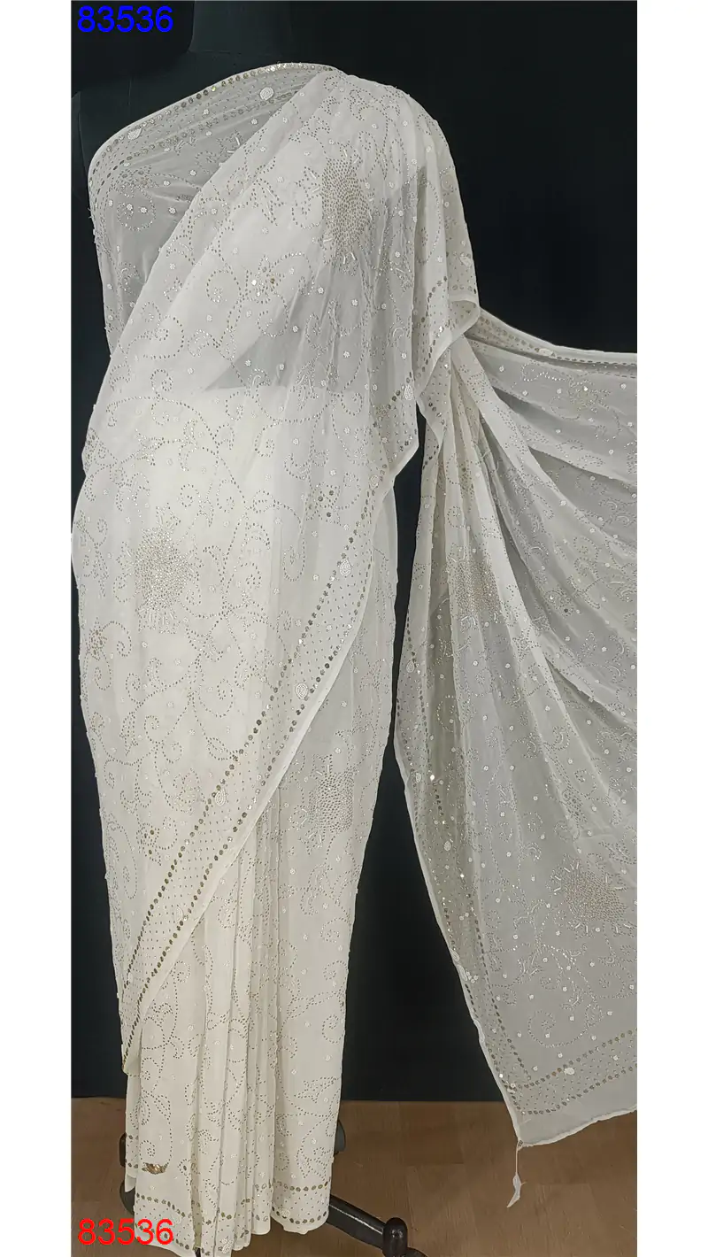 Georgette lucknowi Saree with Mukaish and Badla work : 83536