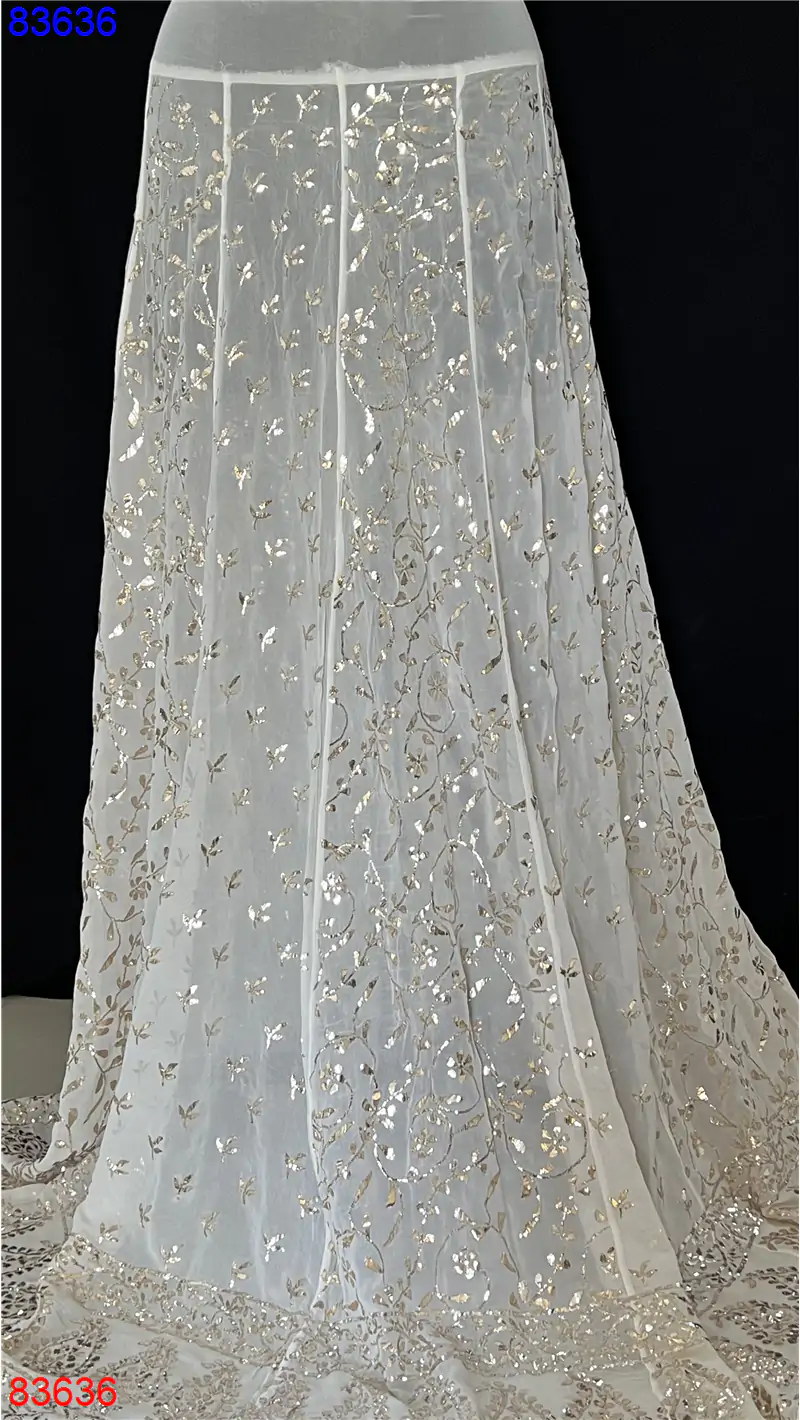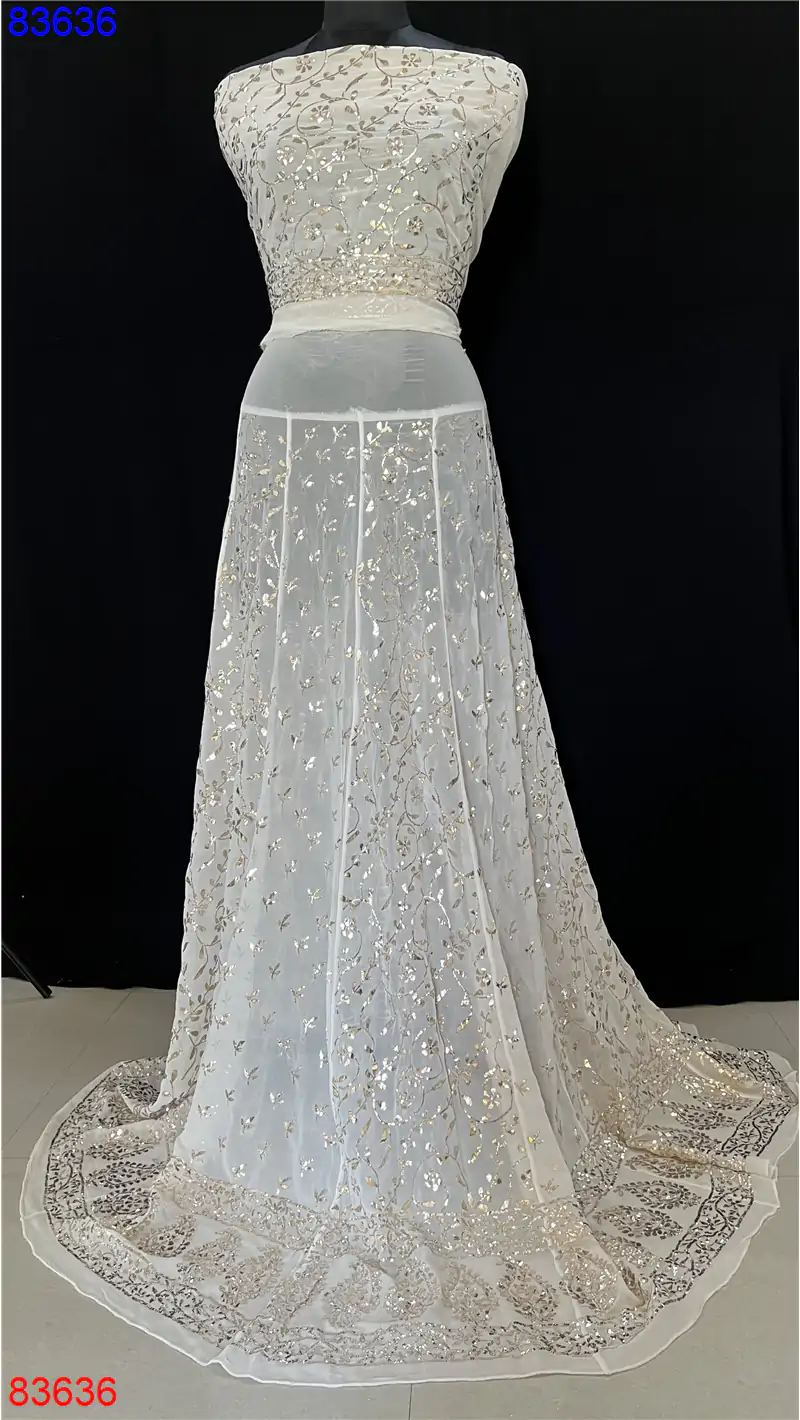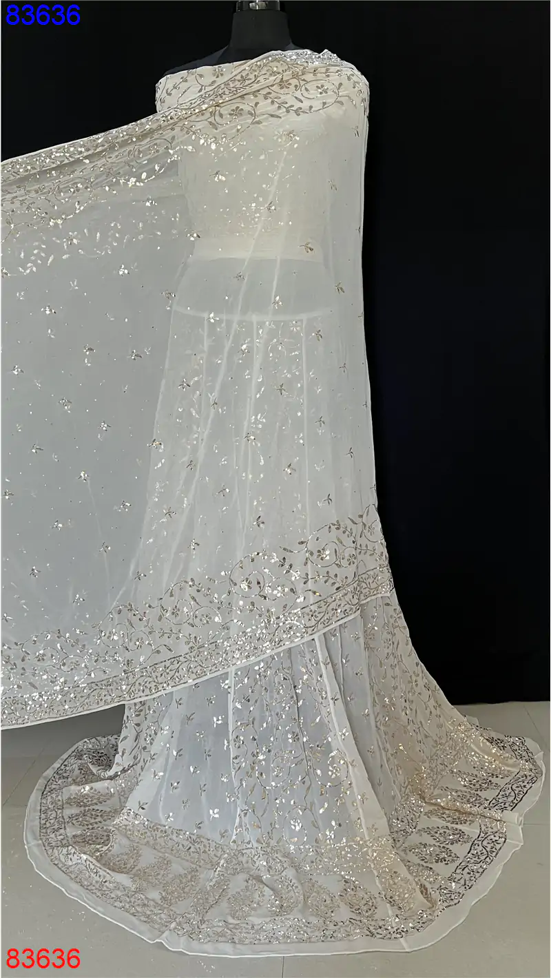 Home » Pure Georgette Lehenga » Bridal Lehenga with mukais kamdani pitta work : 83636