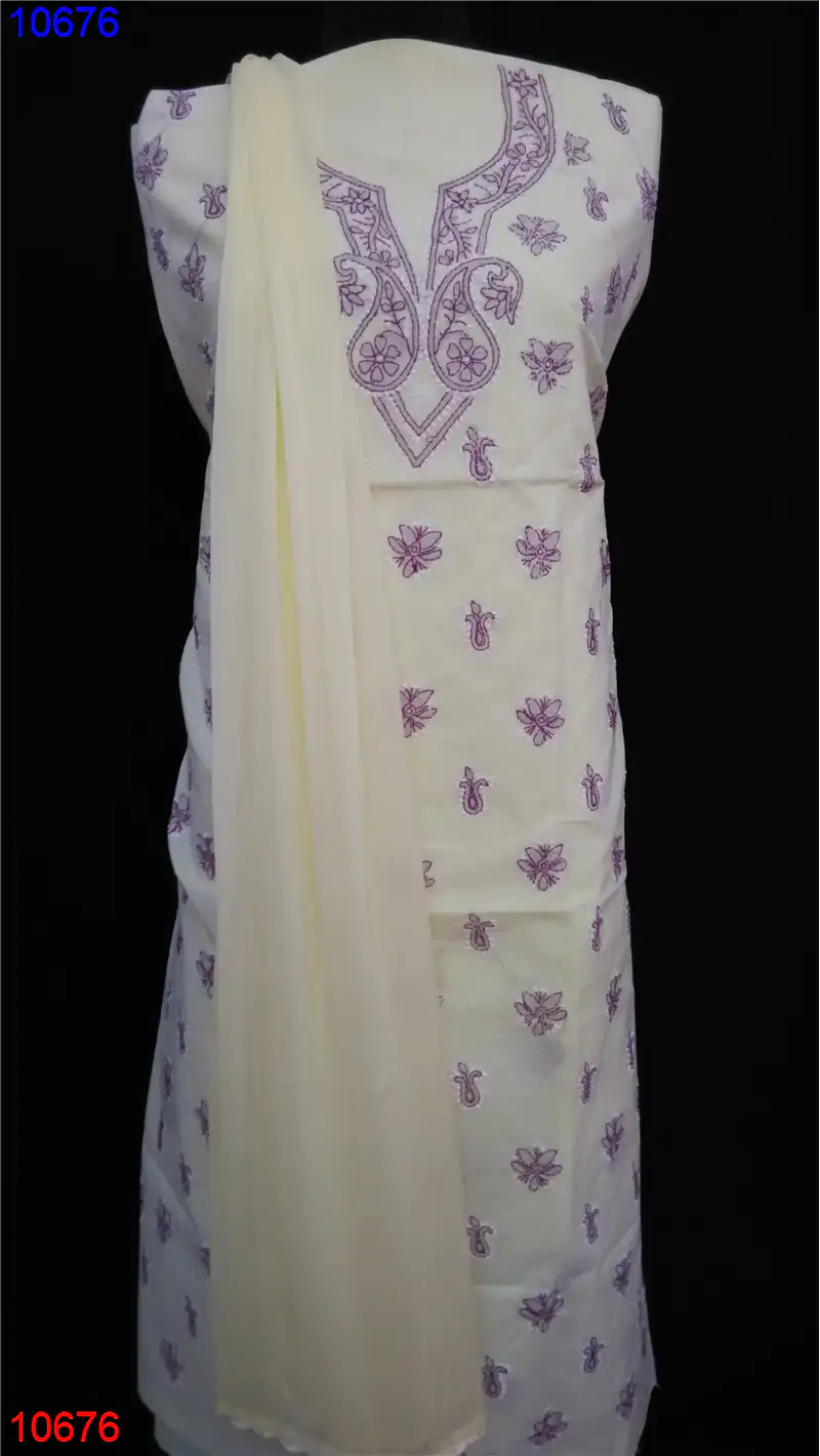 Cotton Straight suit only Chikan work : 10676