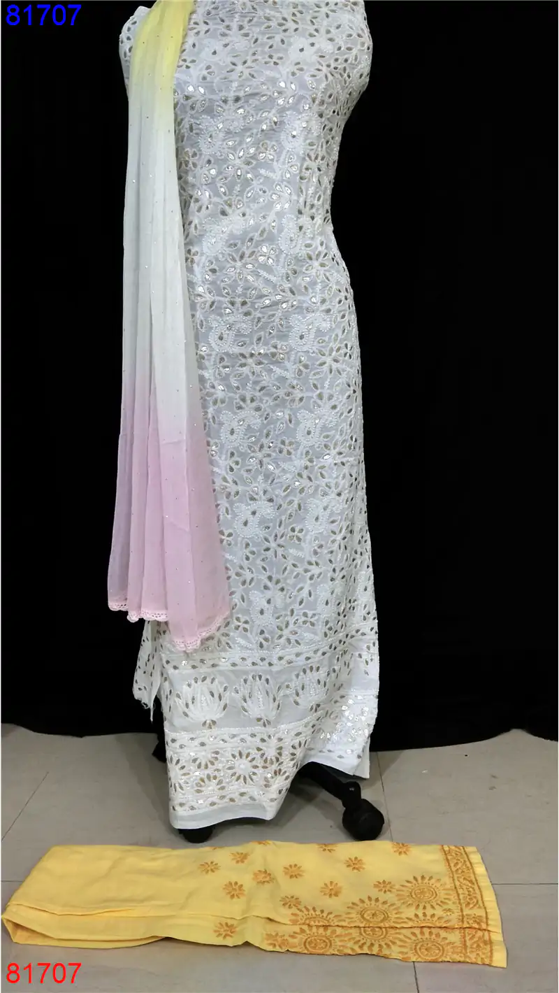 Home » Cotton Suit » Cotton Straight suit with Chikan & Gotapatti work : 81707