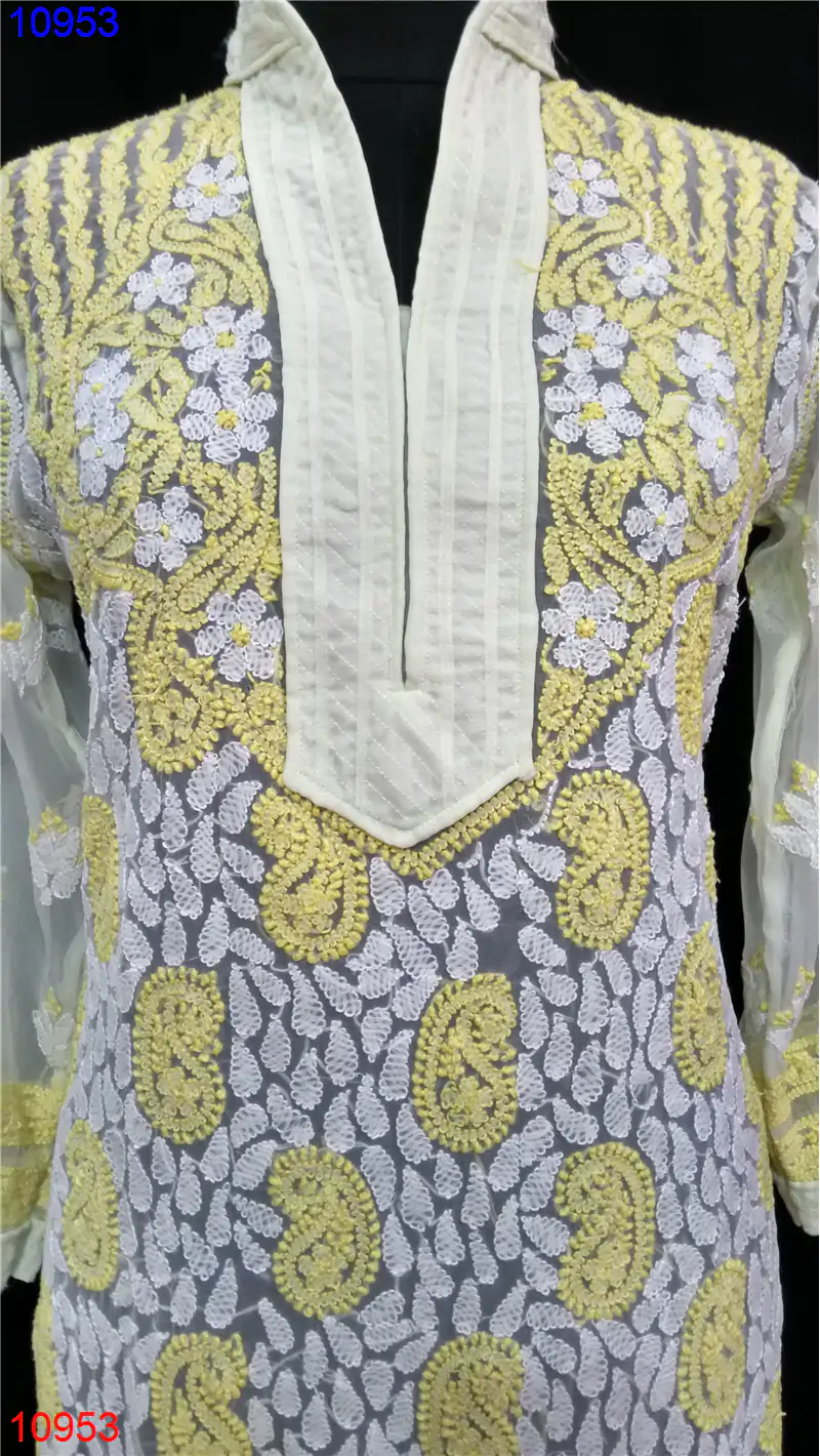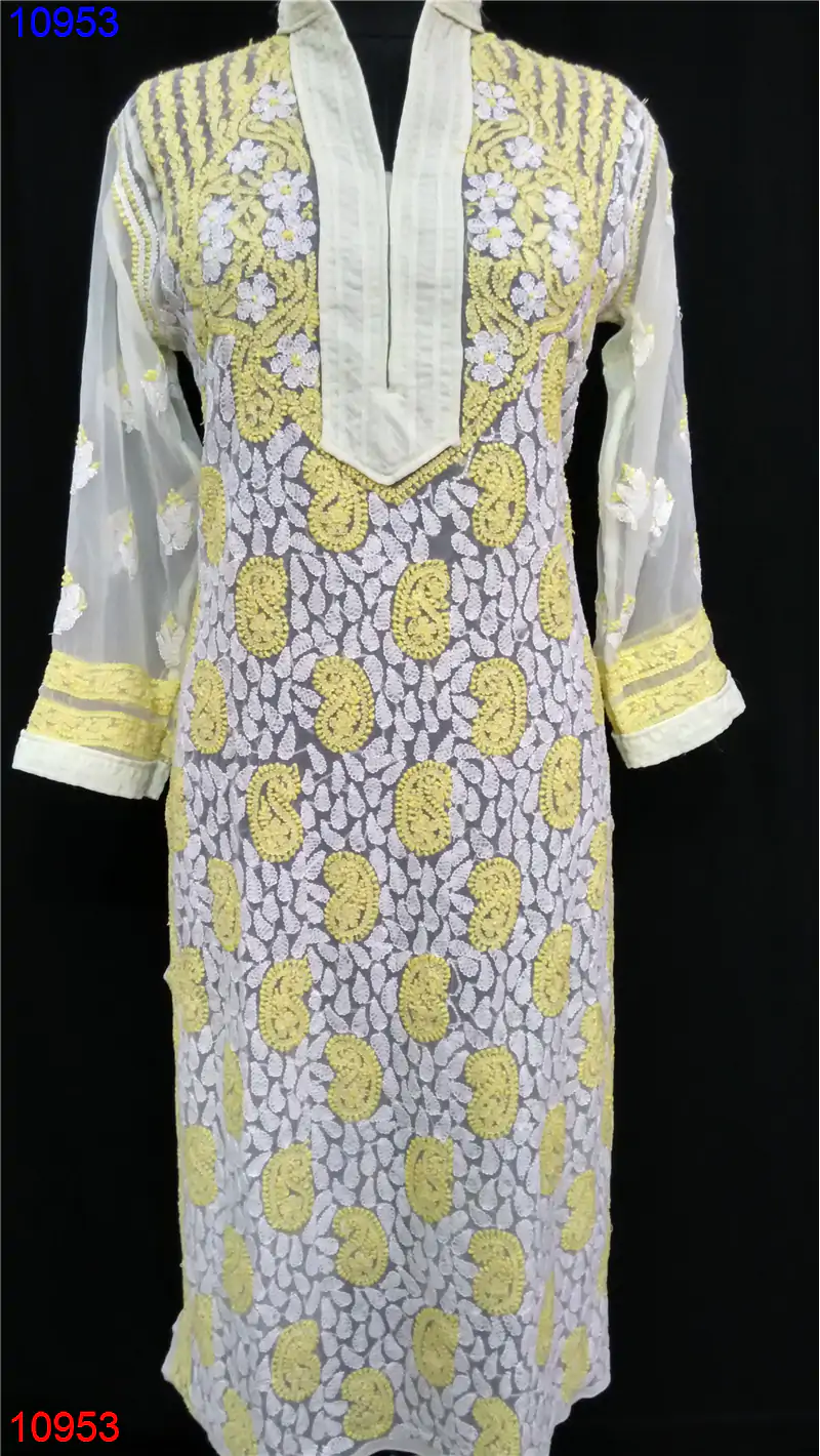 Semi Georgette Kurti Only Chikan work : 10953