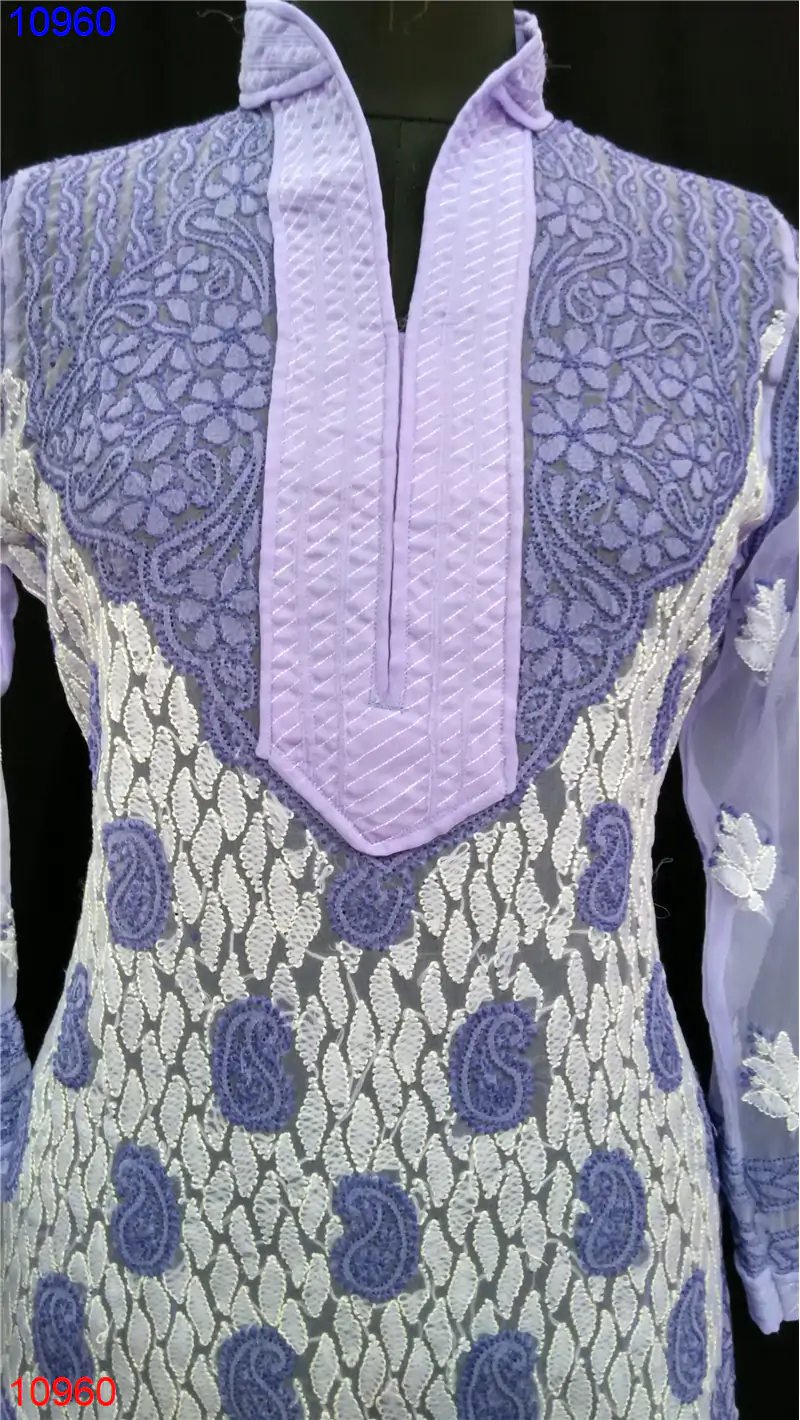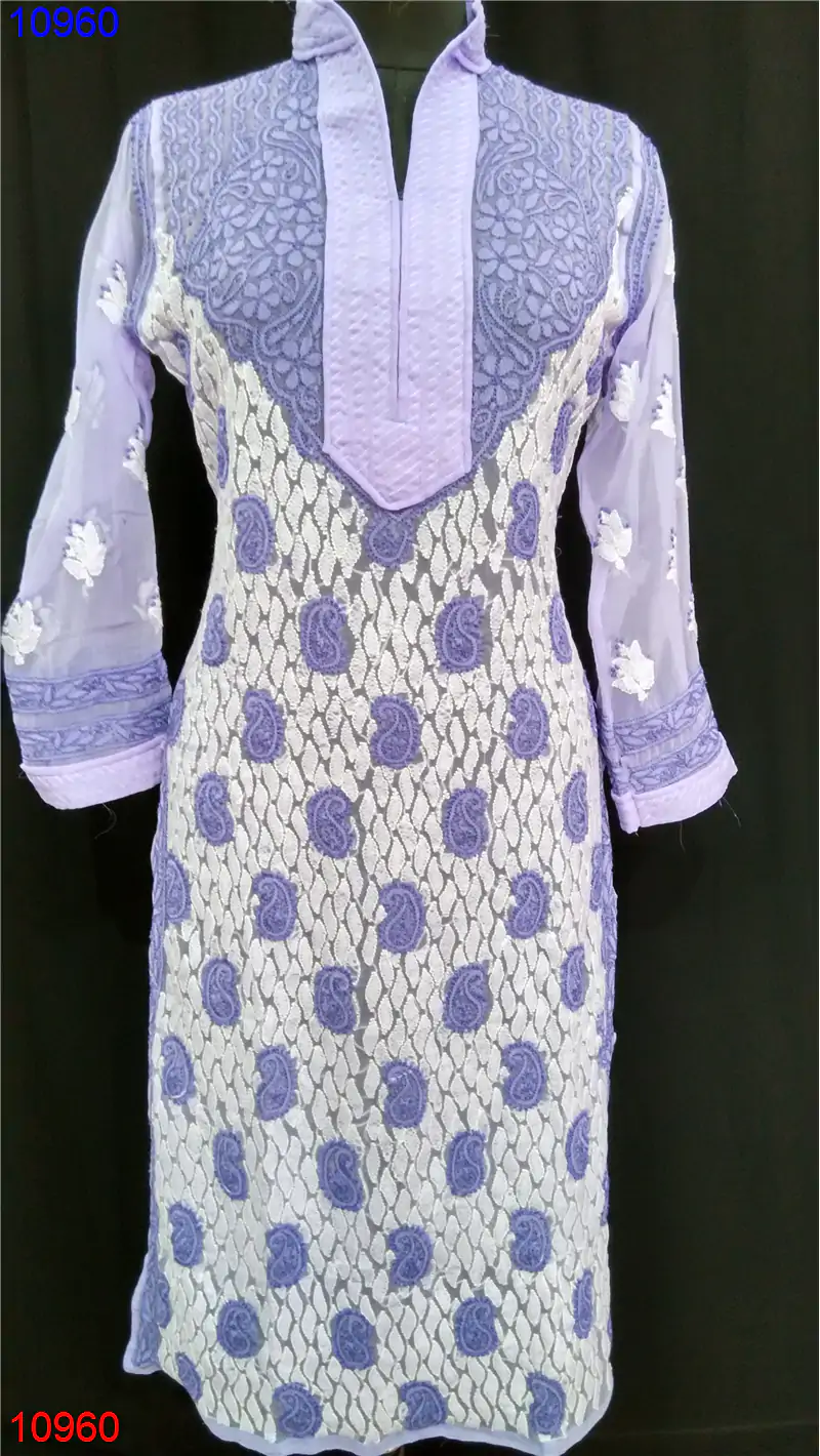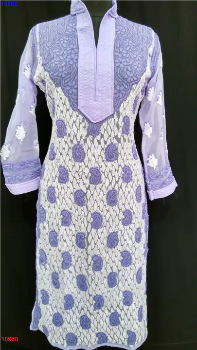 Semi Georgette Kurti Only Chikan work : 10960