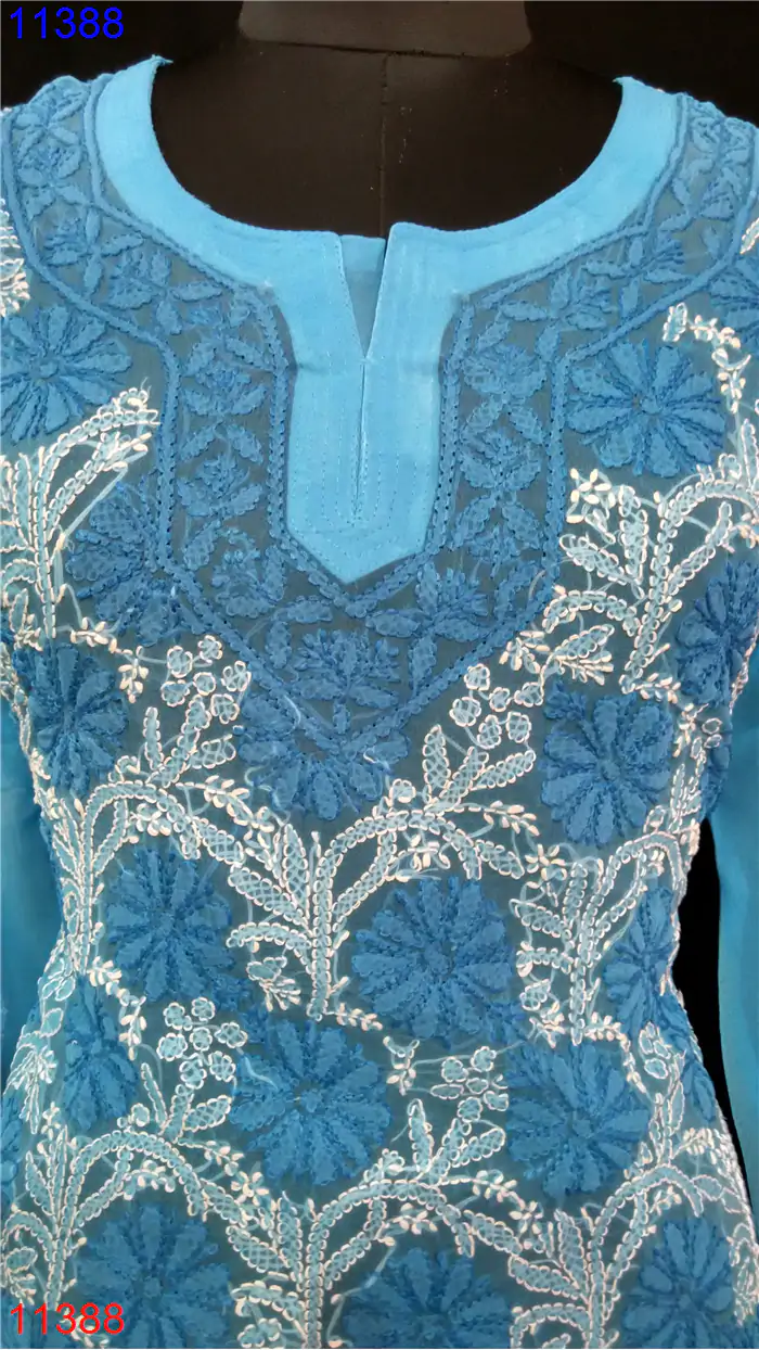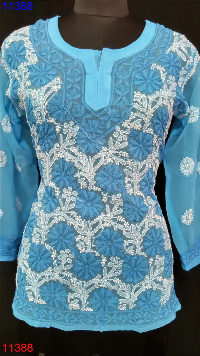 Home » Semi Georgette Top » Semi Georgette Kurti Only Chikan work : 11388