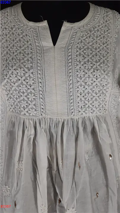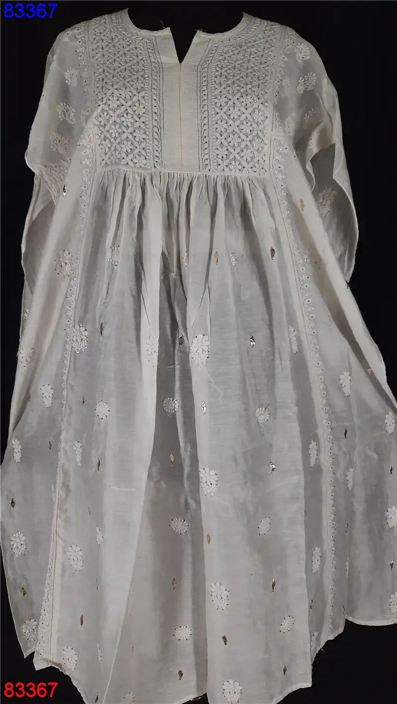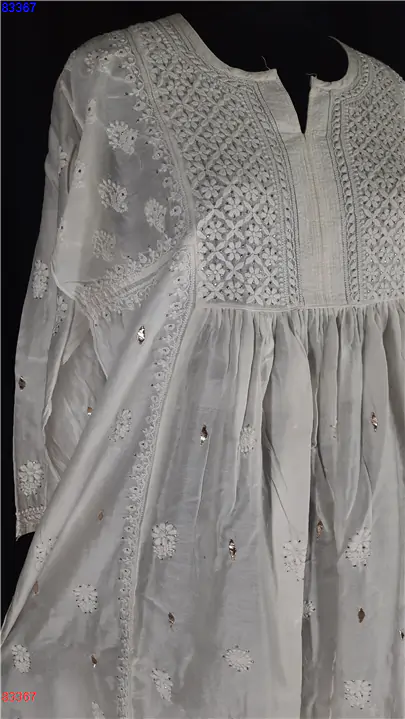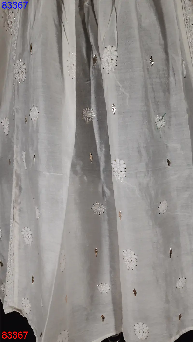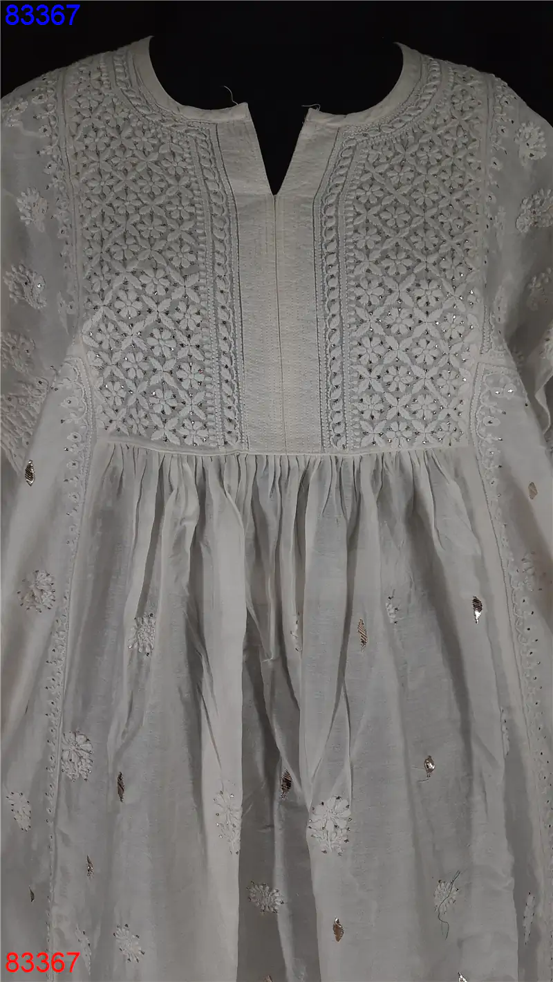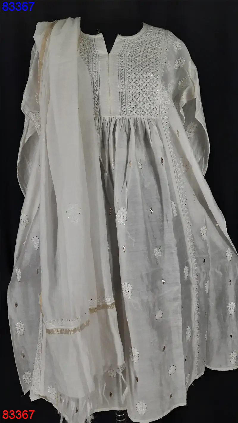 Lucknowi chikankari Chanderi frock style suit : 83367