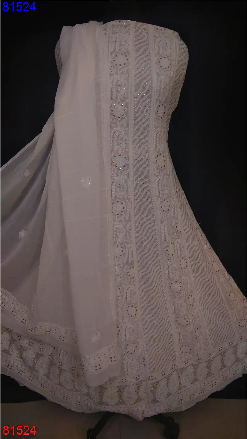 Pure Georgette Chikan Anarkali suit with Mukaish Kamdani work : 81524