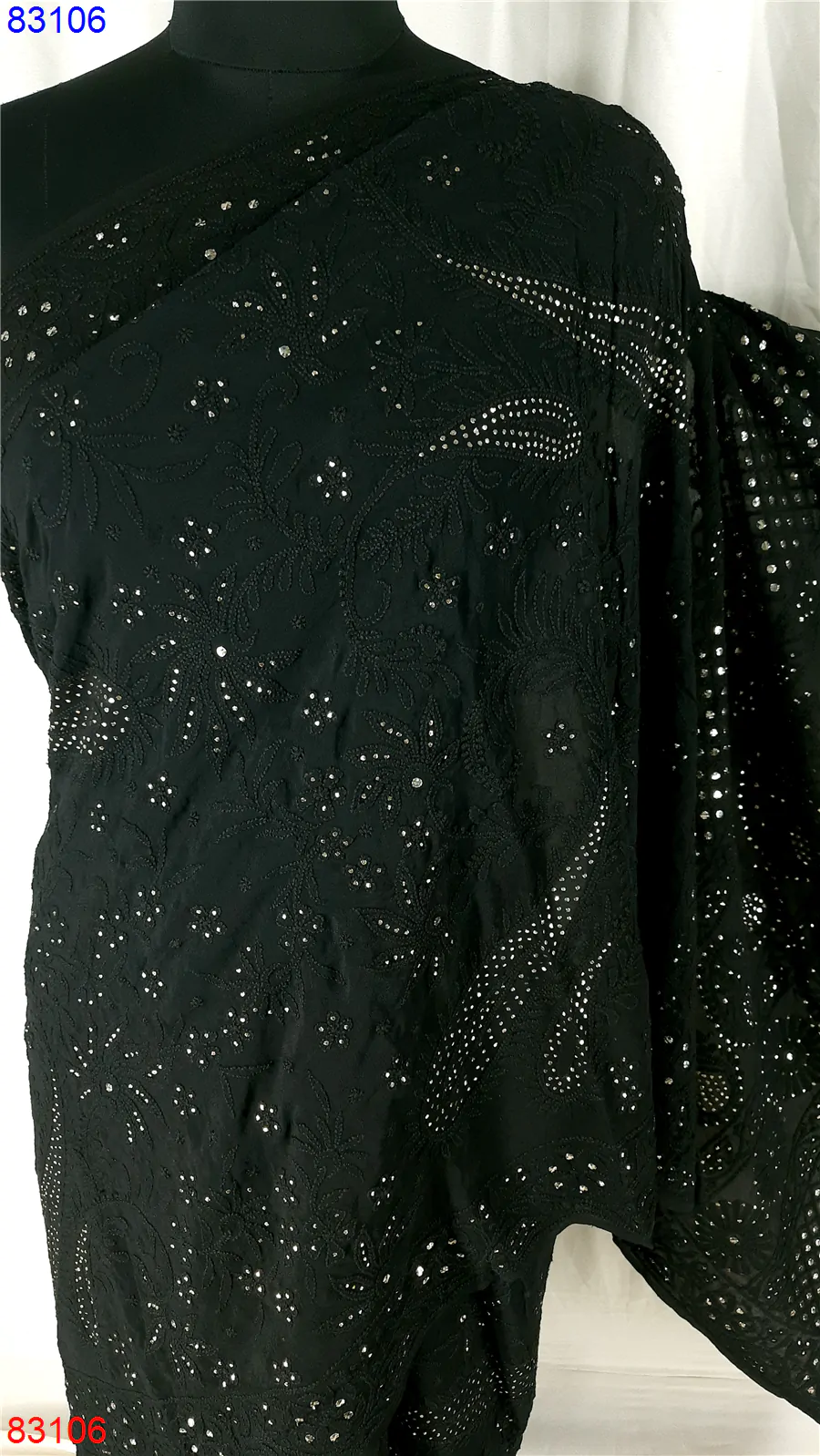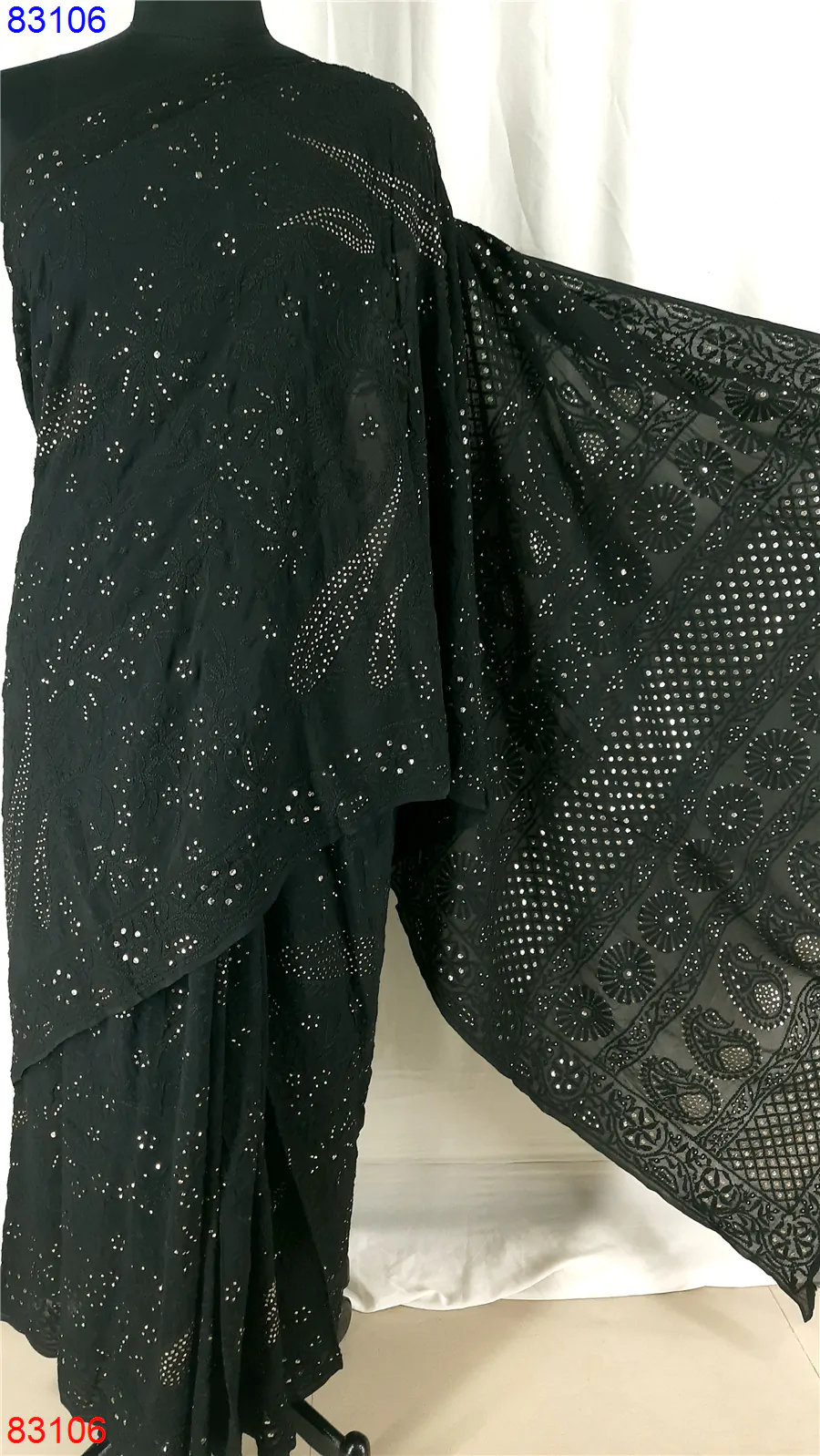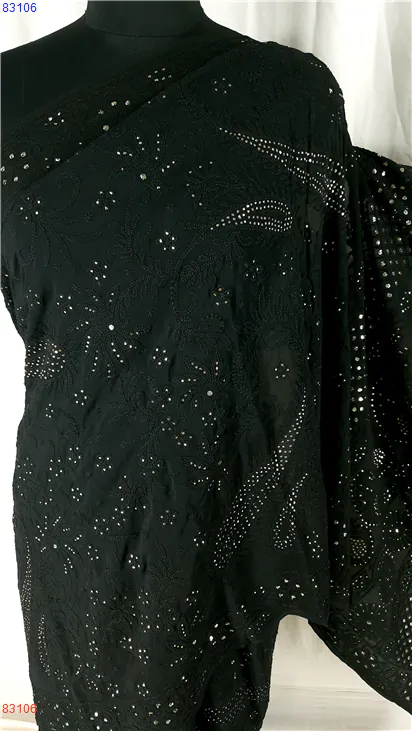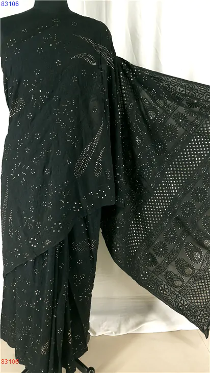 Pure Georgette Chikan Saree with Badla work : 83106