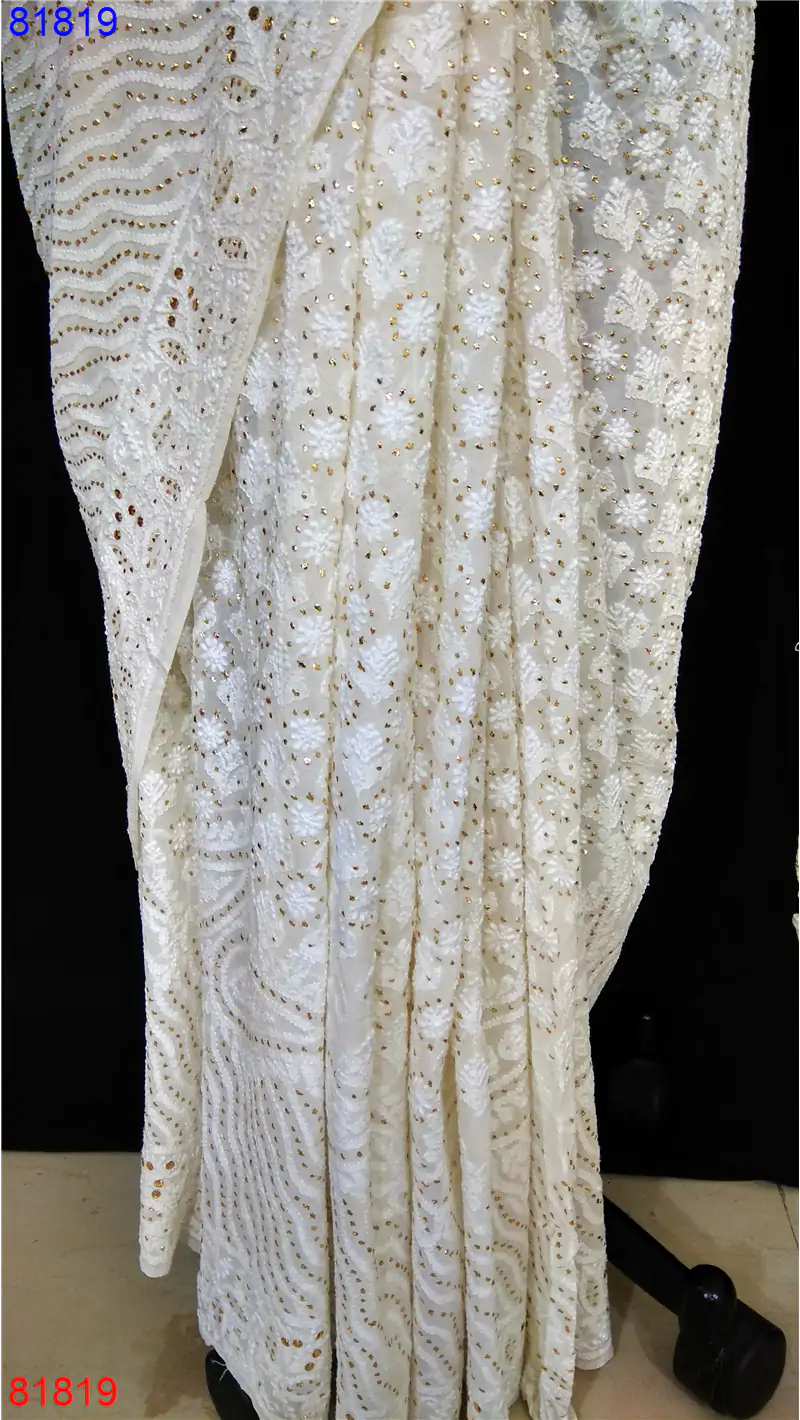 Pure Georgette Chikan Saree with Mukaish work : 81819