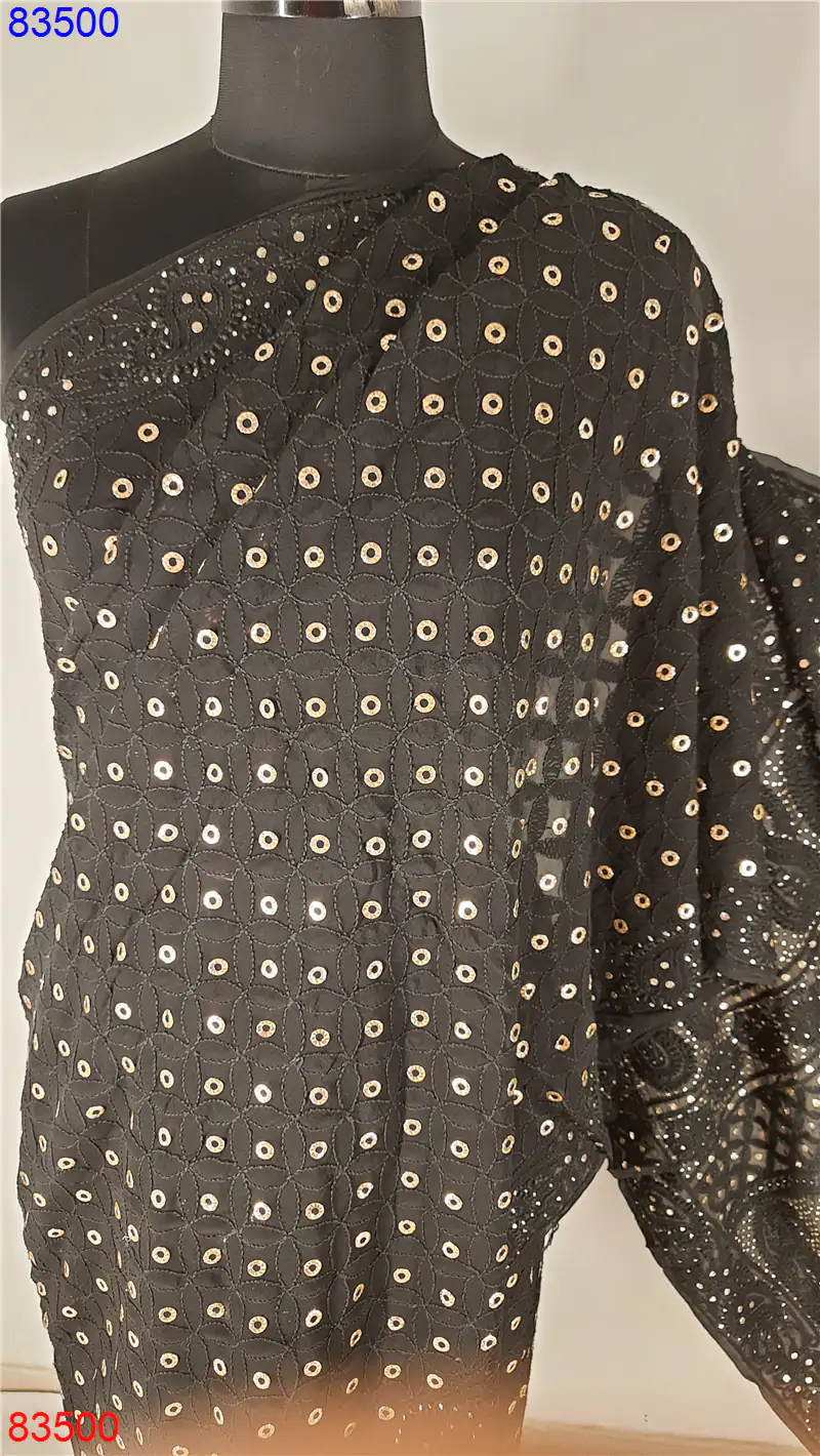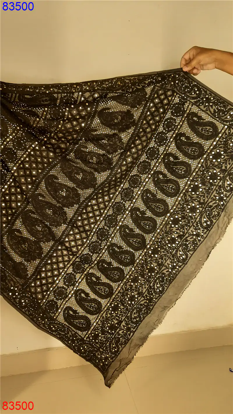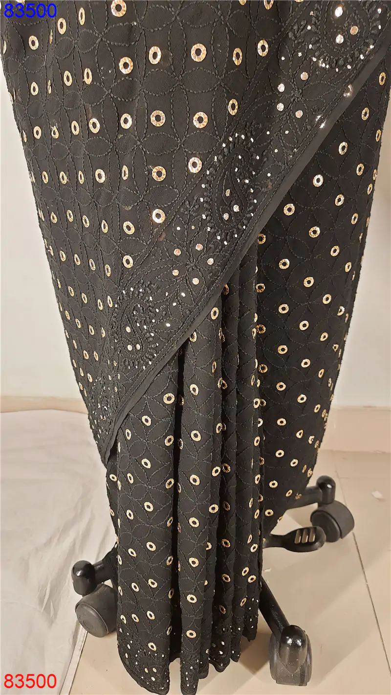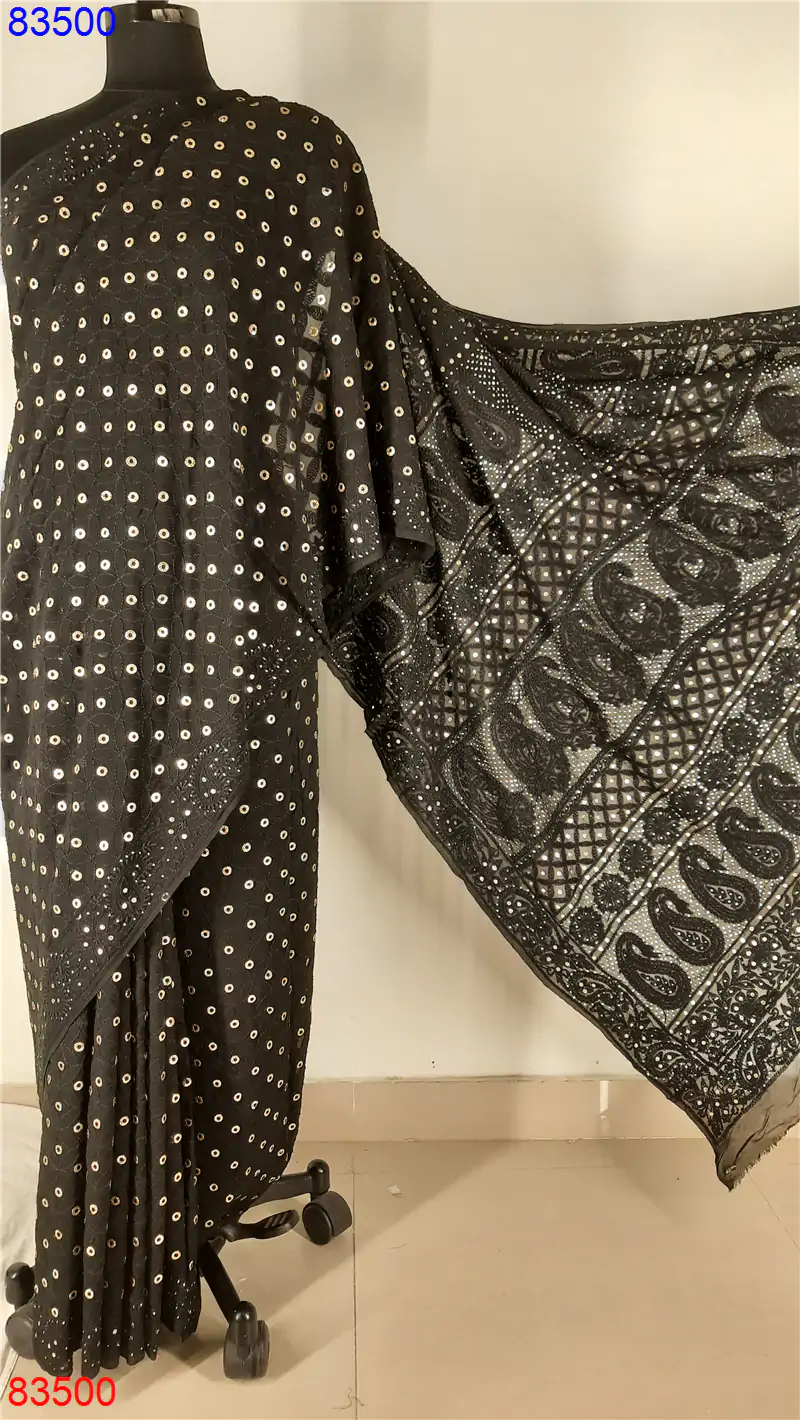 Pure Georgette Chikan Saree with Mukaish work : 83500