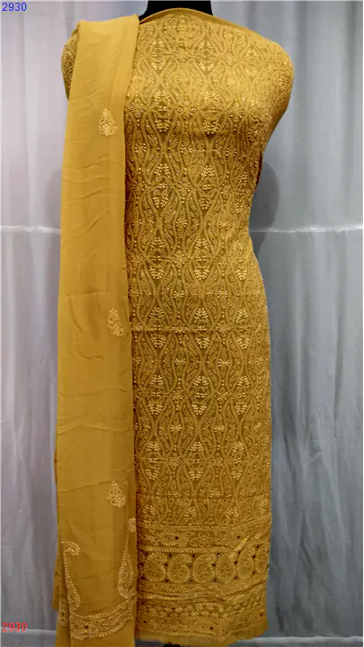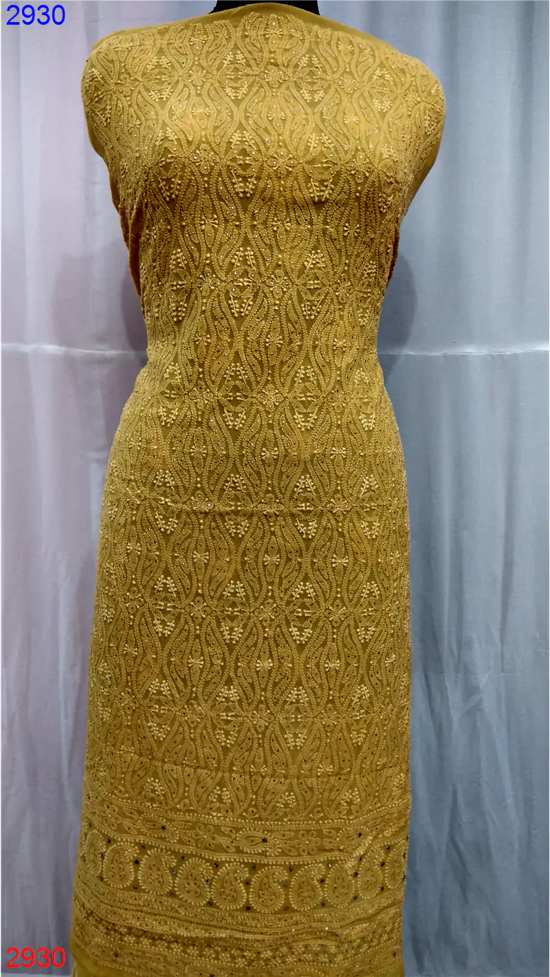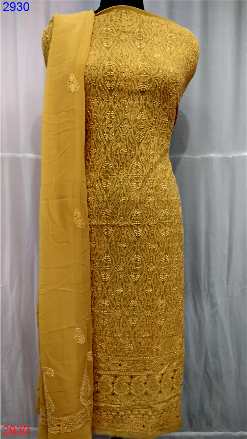 Pure Georgette Straight Suit chikan with mukaish : 2930