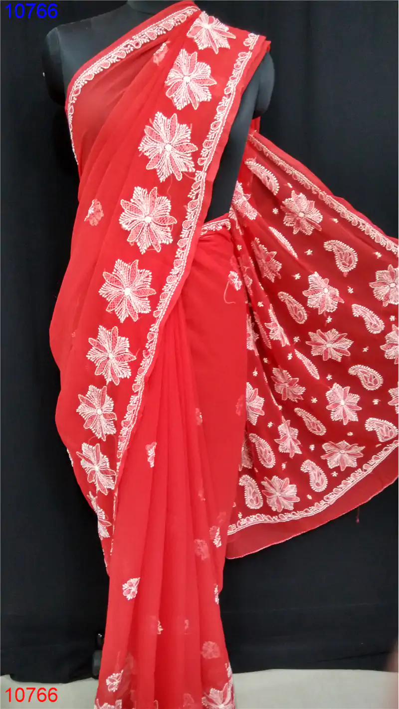Home » Semi Georgette Saree » Semi Georgette Chikan Saree : 10766