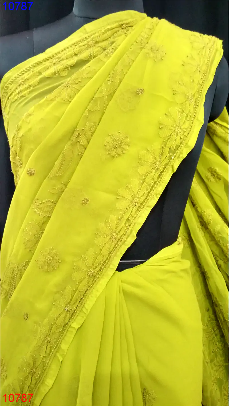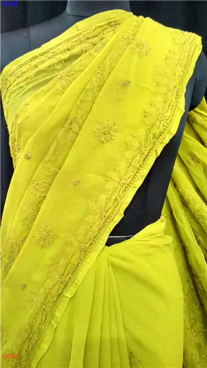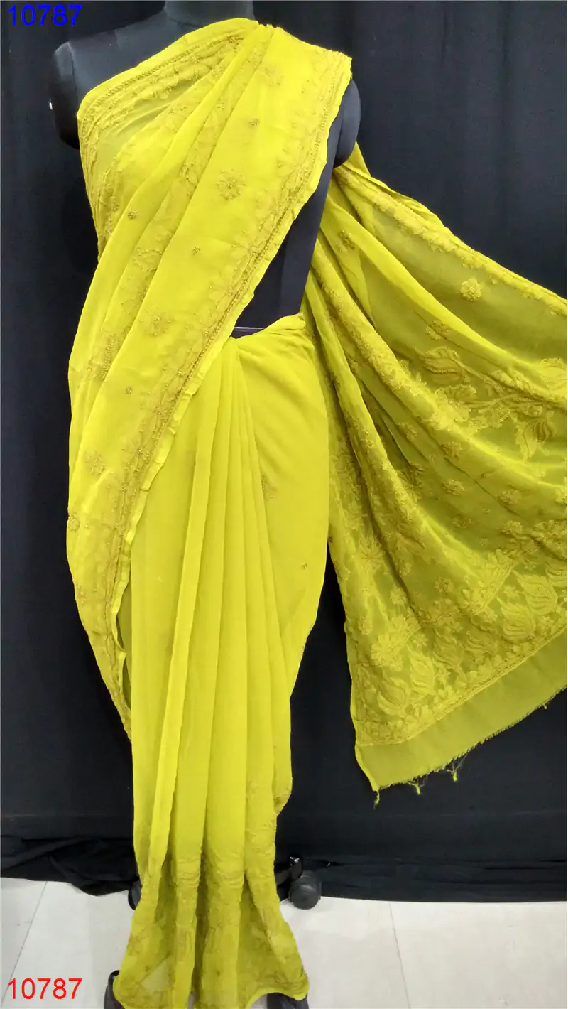 Semi Georgette Chikan Saree : 10787