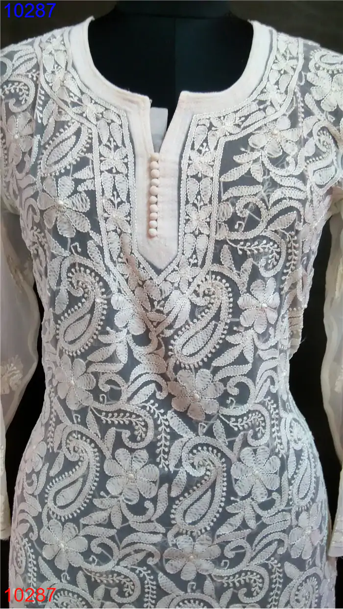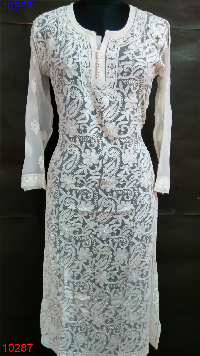 Semi Georgette Kurti Only Chikan work : 10287