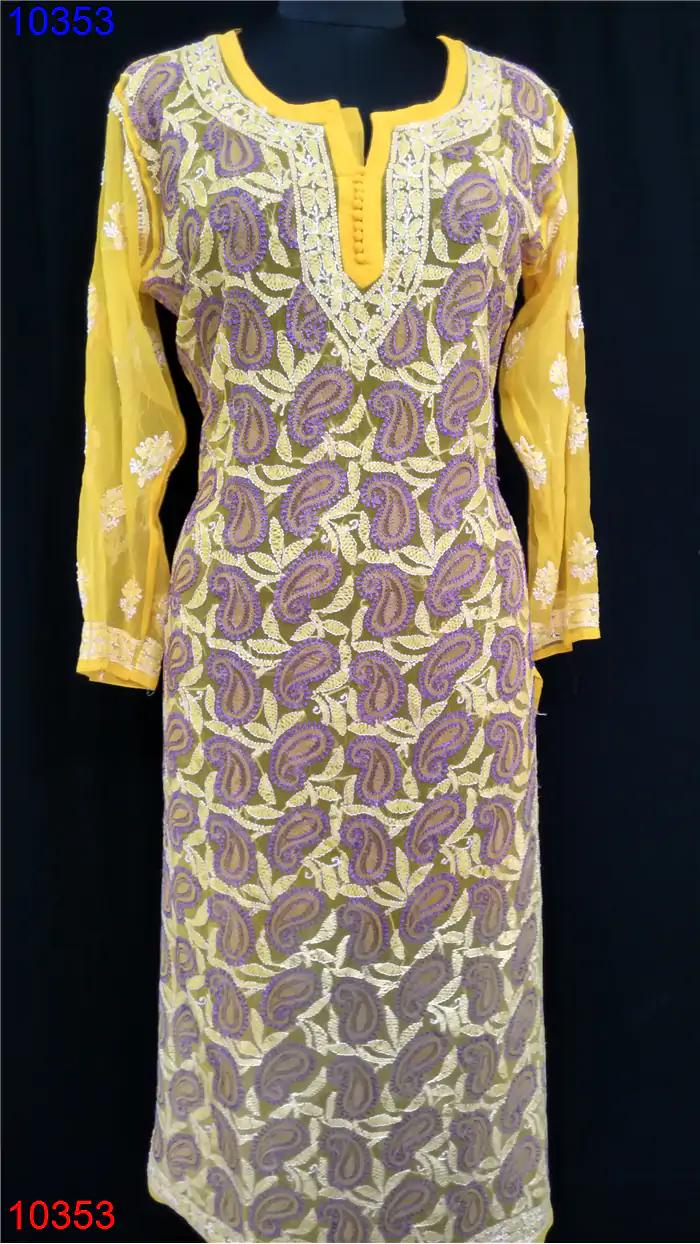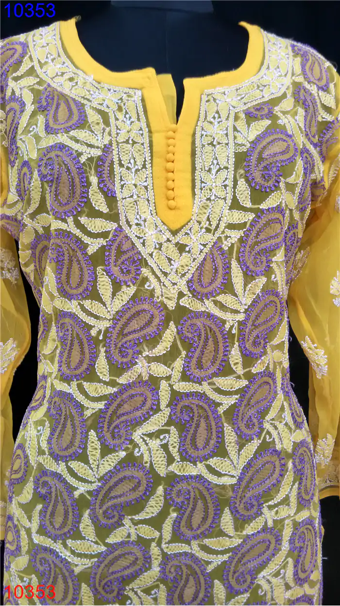 Semi Georgette Kurti Only Chikan work : 10353