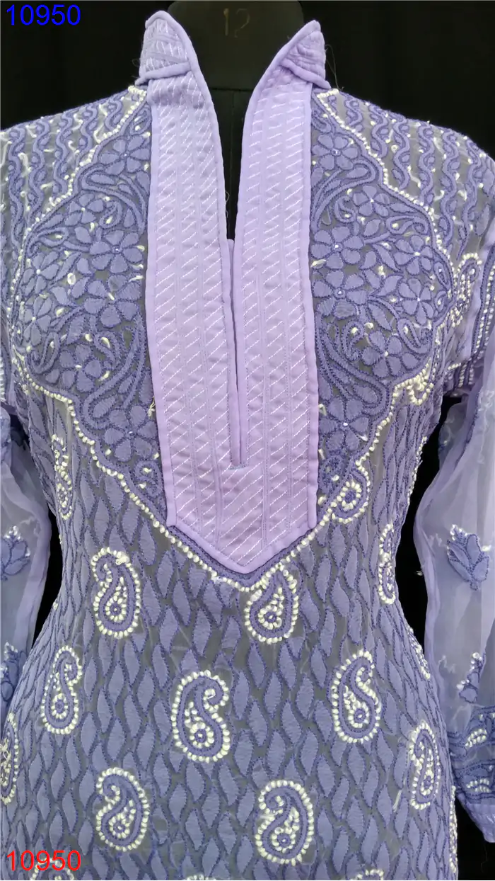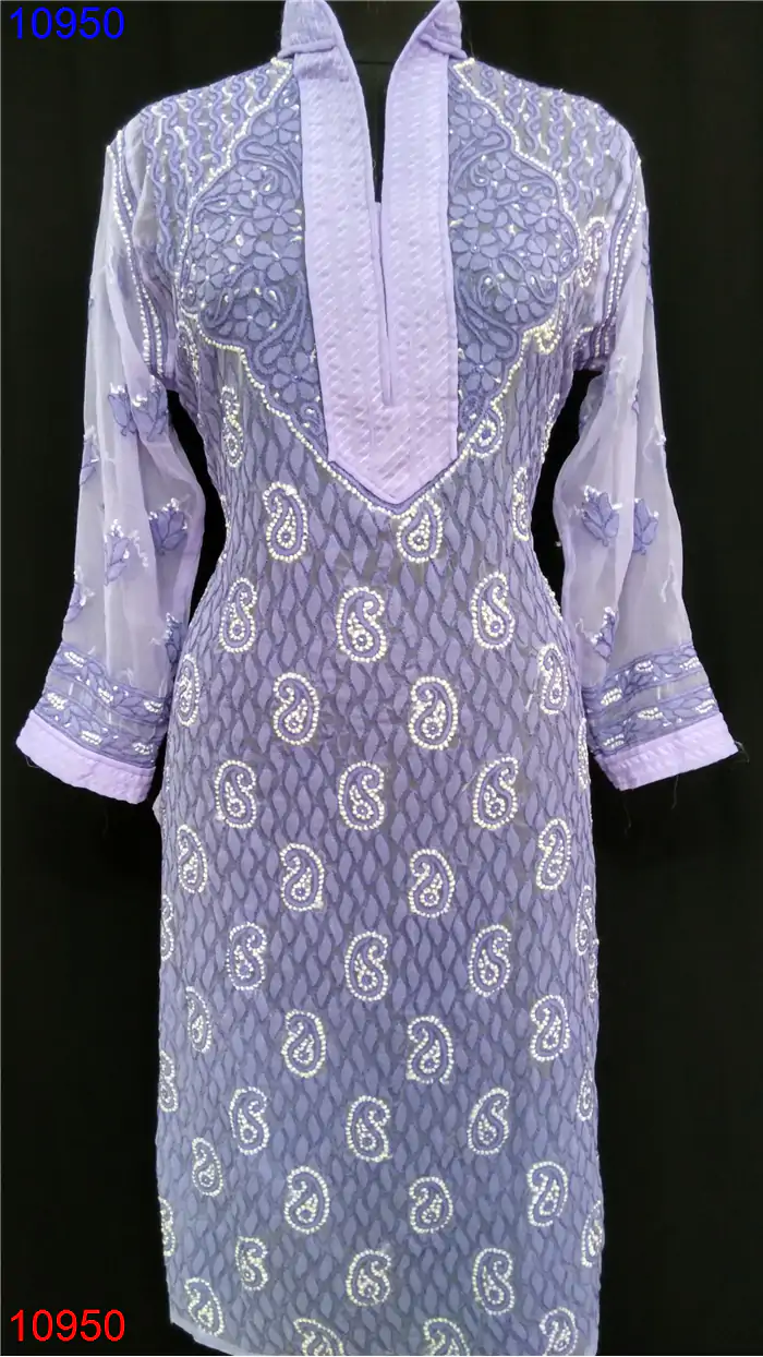 Semi Georgette Kurti Only Chikan work : 10950
