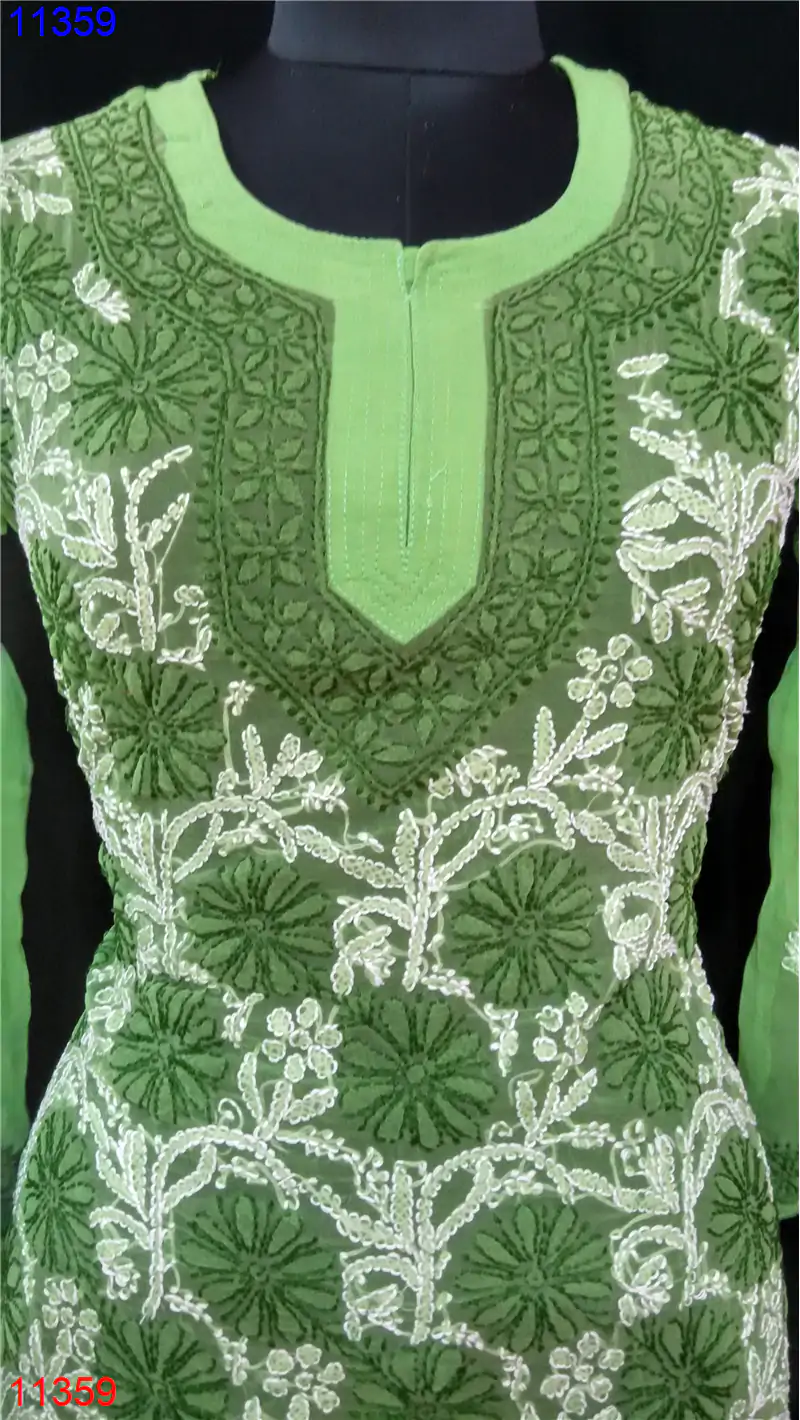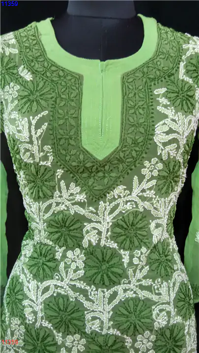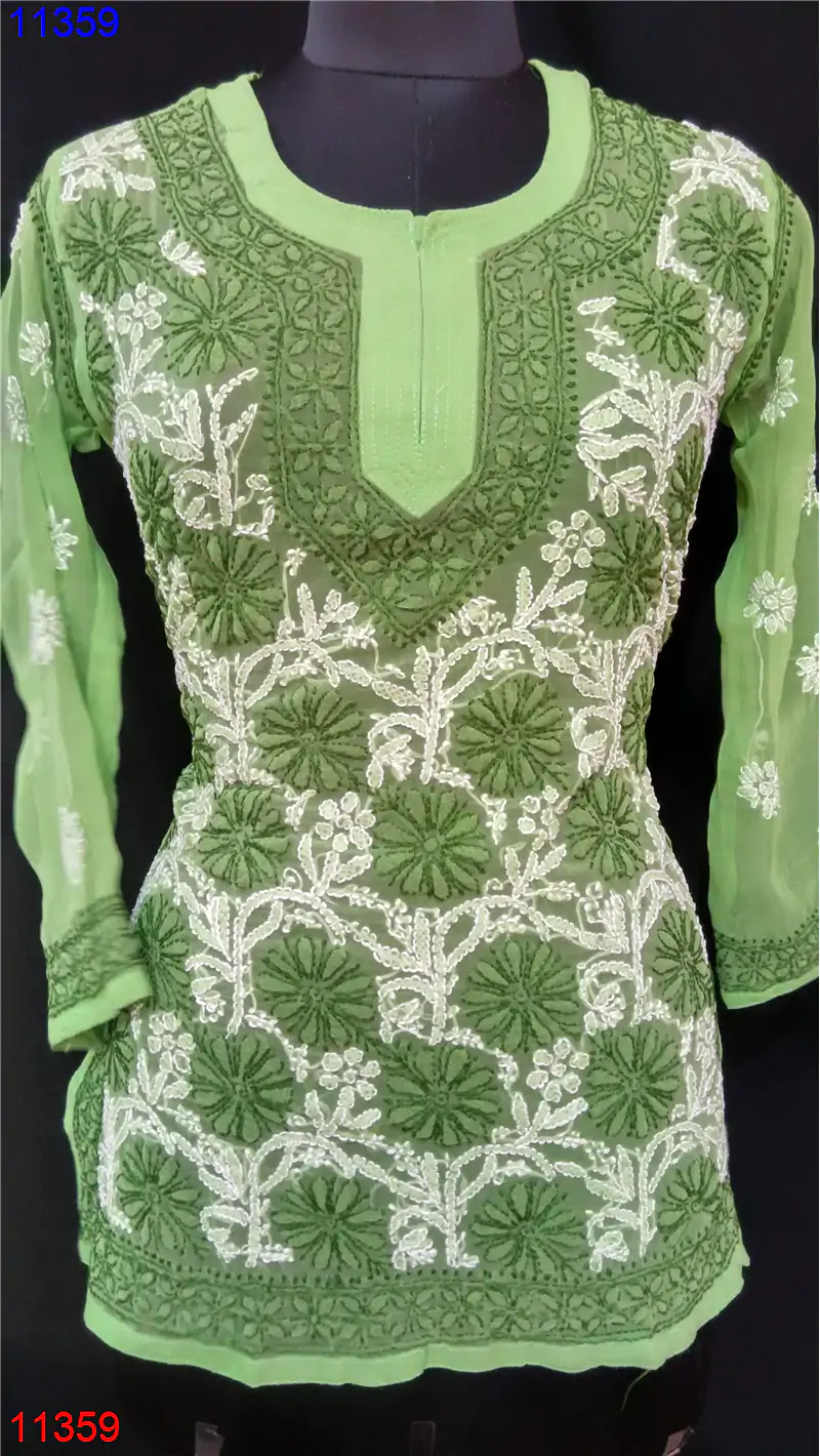Semi Georgette Kurti Only Chikan work : 11359