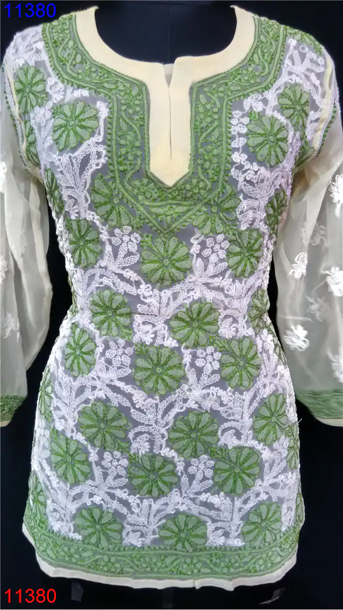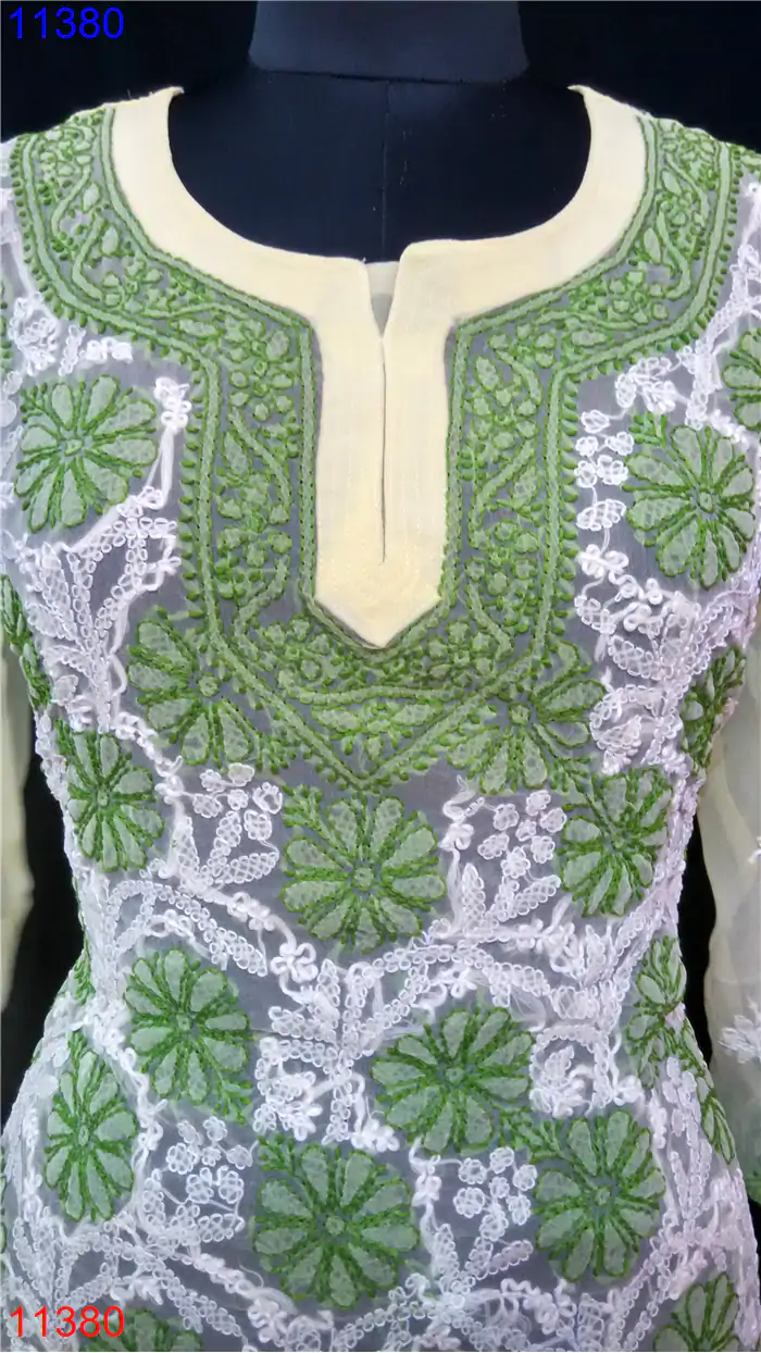 Semi Georgette Kurti Only Chikan work : 11380