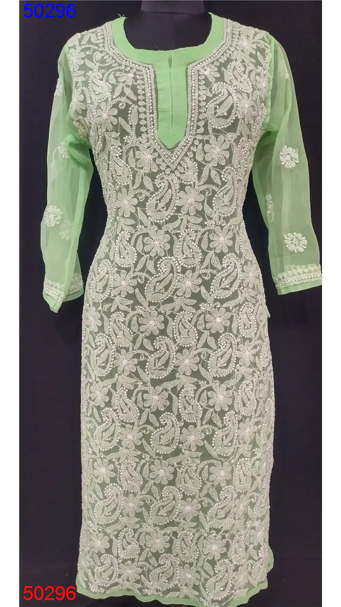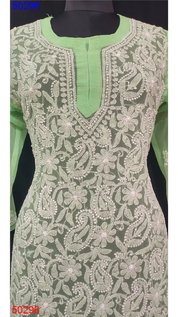 Home » Semi Georgette Top » Semi Georgette Kurti Only Chikan work : 50296