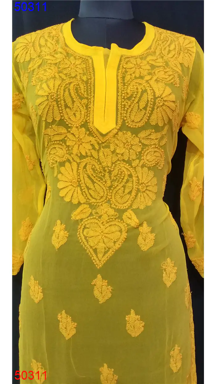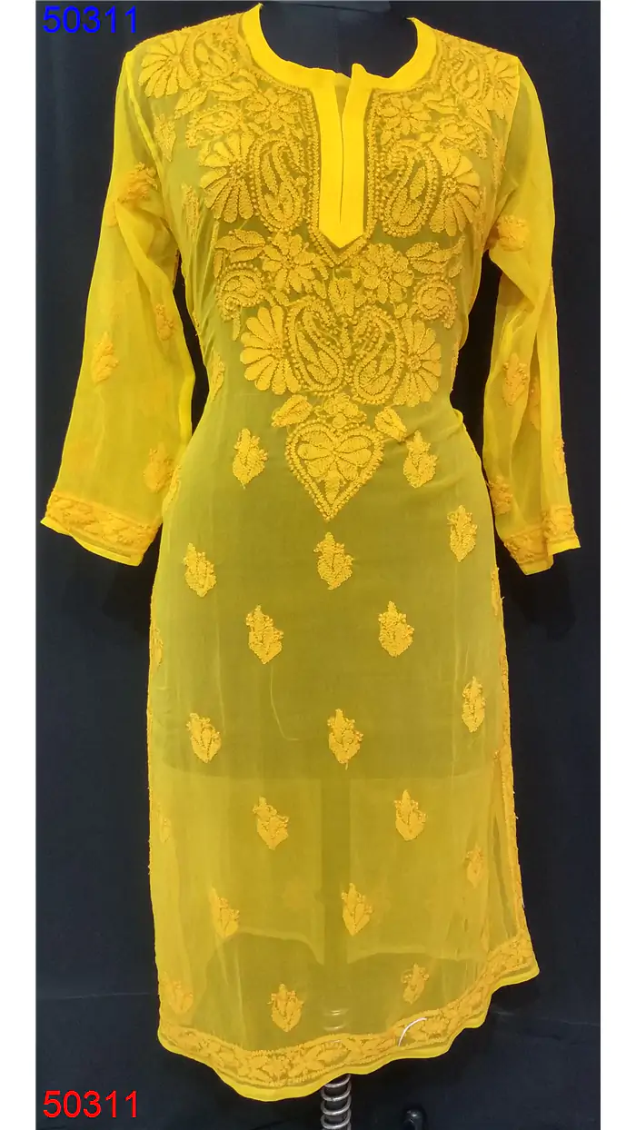 Semi Georgette Kurti Only Chikan work : 50311