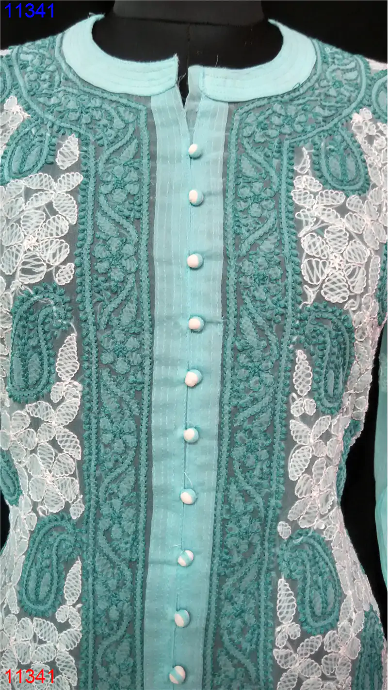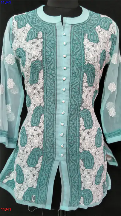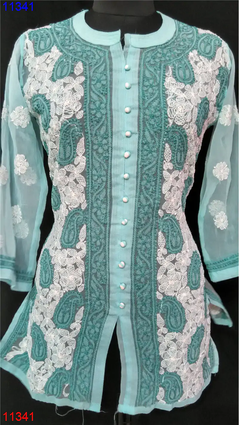 Home » Semi Georgette Top » Semi Georgette Short Front Open Only Chikan work : 11341